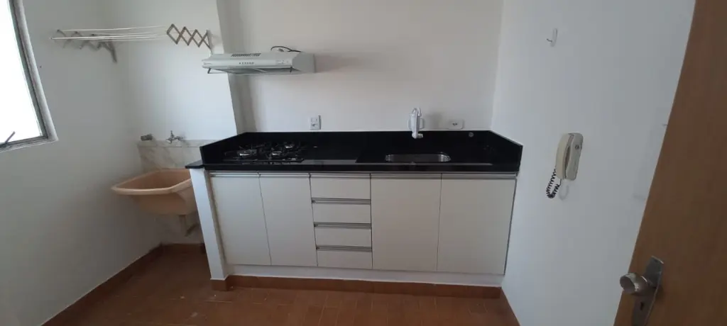 APARTAMENTO, UM DORMITÓRIO, SALA, BANHEIRO SOCIAL, COZINHA ÁREA DE SERVIÇO.