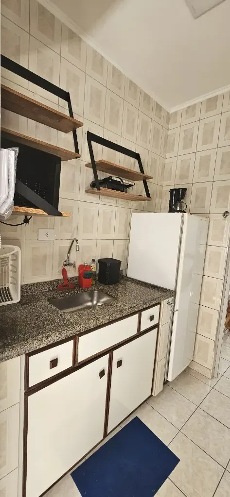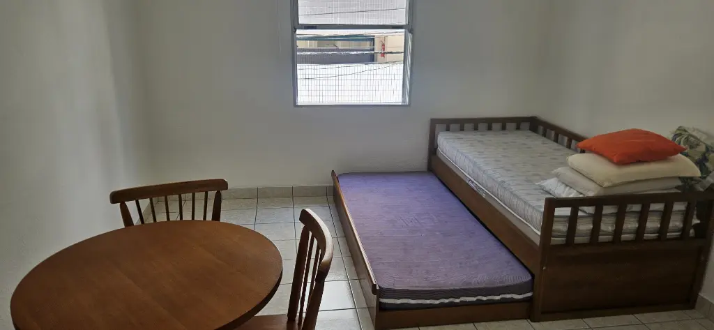 Kit mobiliada com vaga de garagem rotativa a uma quadra da praia, água, luz, condomínio e IPTU incluso no pacote, bairro Canto do Forte, prédio sem elevador fica no 1º andar, local excelente perto de supermercado, padaria, farmácia, hospitais, escolas etc...