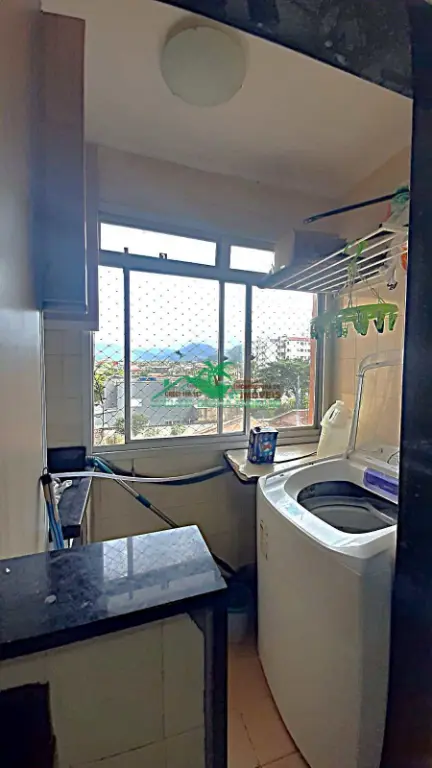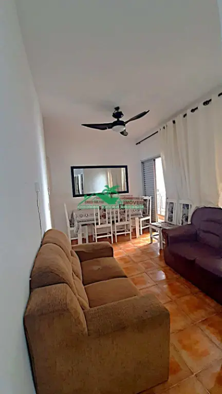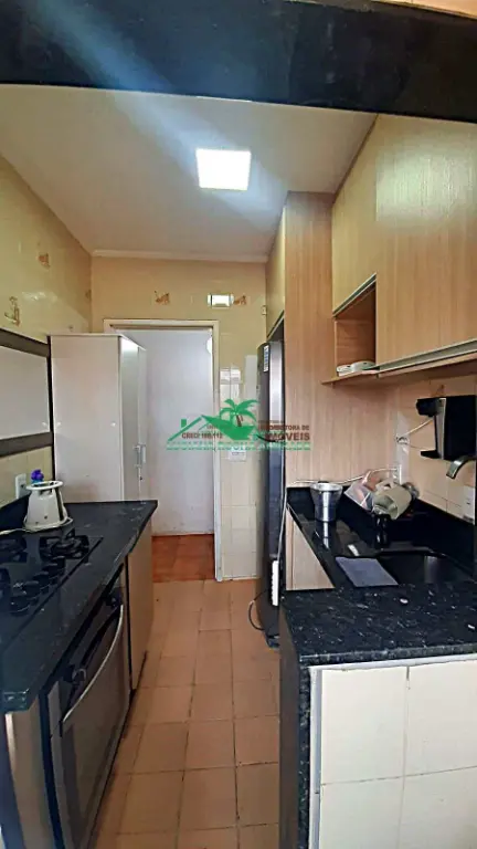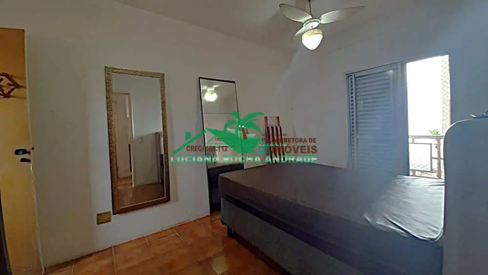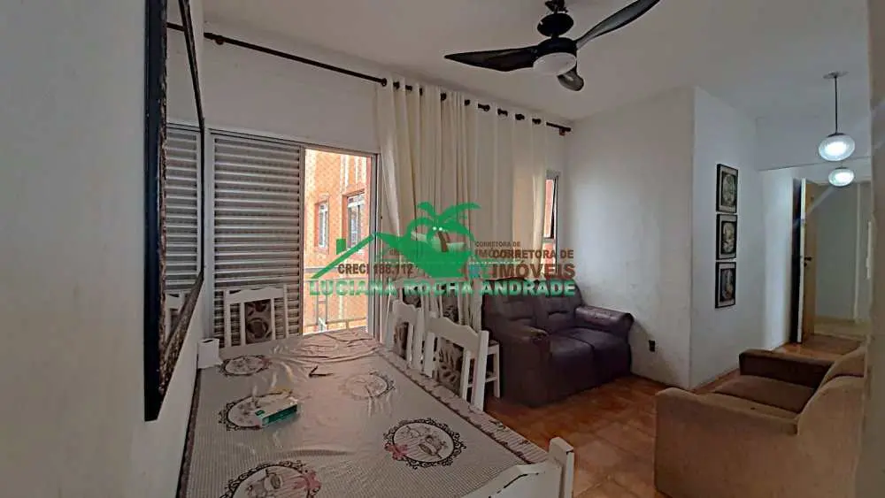 2 dormitórios, sendo 1 suíte, banheiro social, cozinha funcional, área de serviço, sala para 2 ambientes, sacada com vista para o mar,