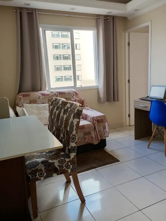 1 dormitório, 1 sala, 1 banheiro, 1 vaga
