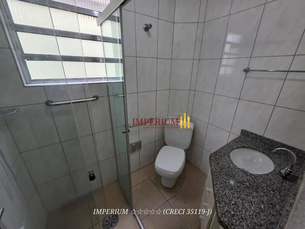 - Banheiro com gabinete e box de vidro