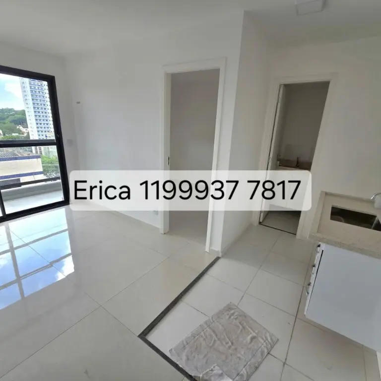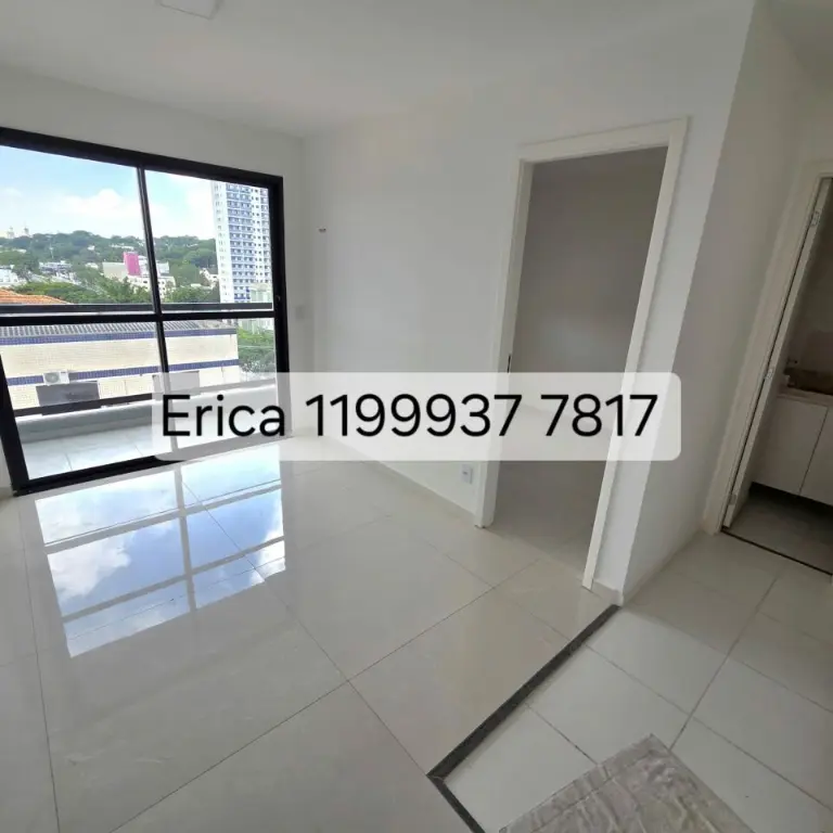 Apartamento possui 1 quarto, sala com varanda, cozinha com gabinete, banheiro