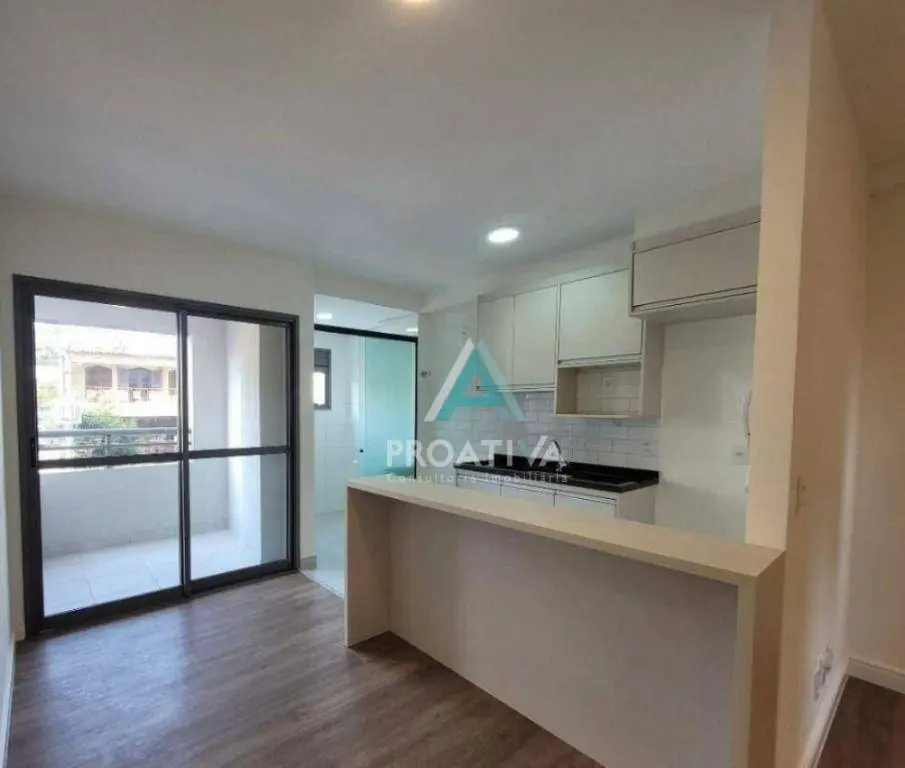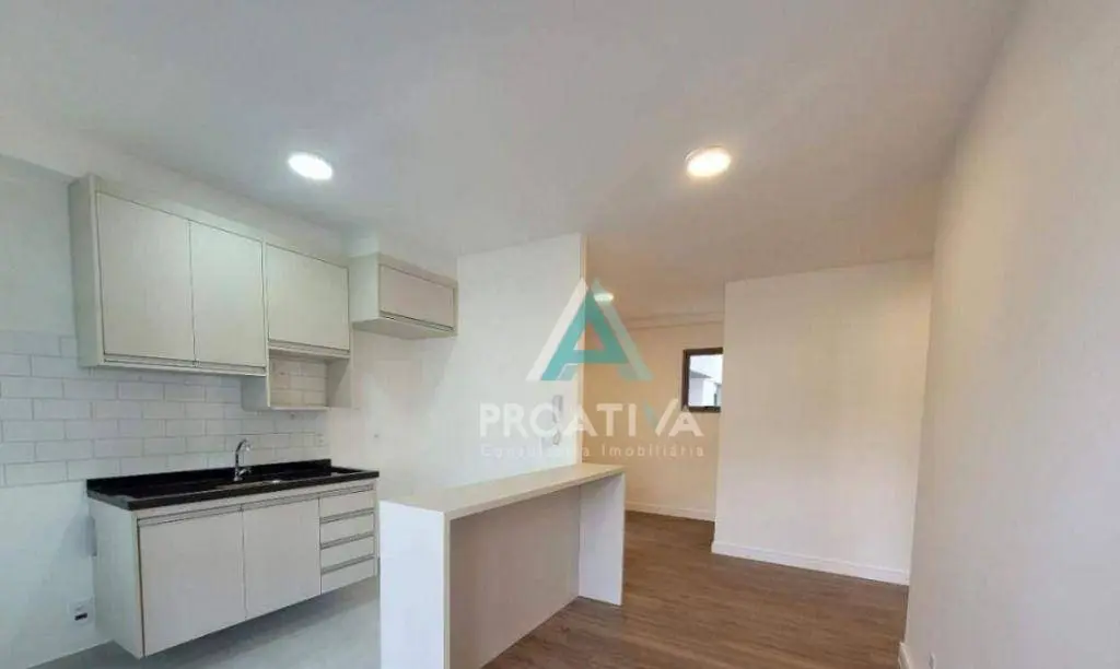 Este apartamento para locação em Santo André possui planta funcional com ambientes integrados. A sala se conecta à cozinha americana planejada, criando um espaço moderno e eficiente. O imóvel conta ainda com terraço, área de serviço e dois dormitórios, sendo uma suíte, ambos com armários planejados.