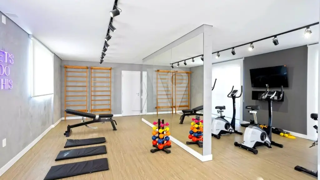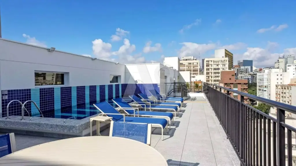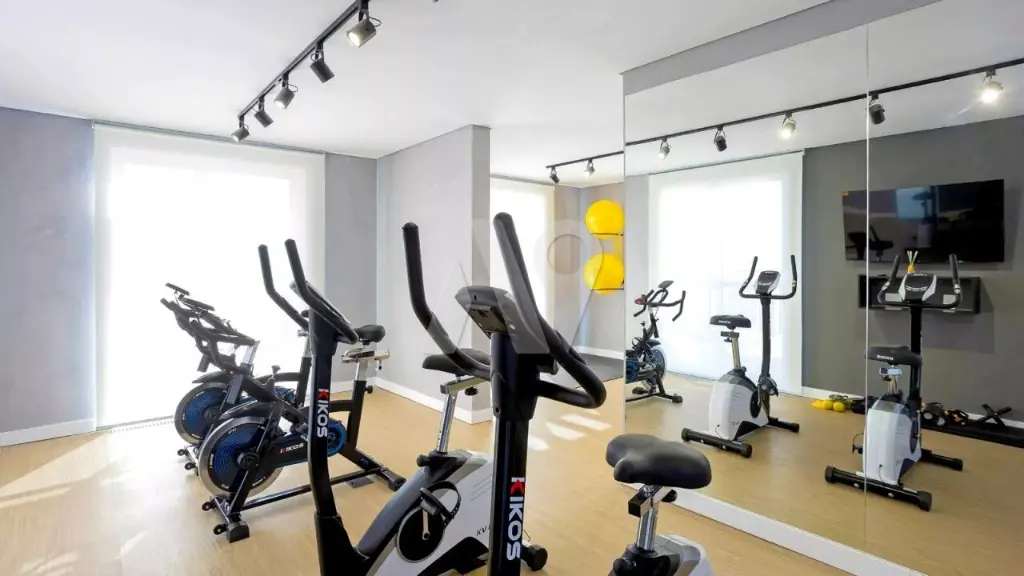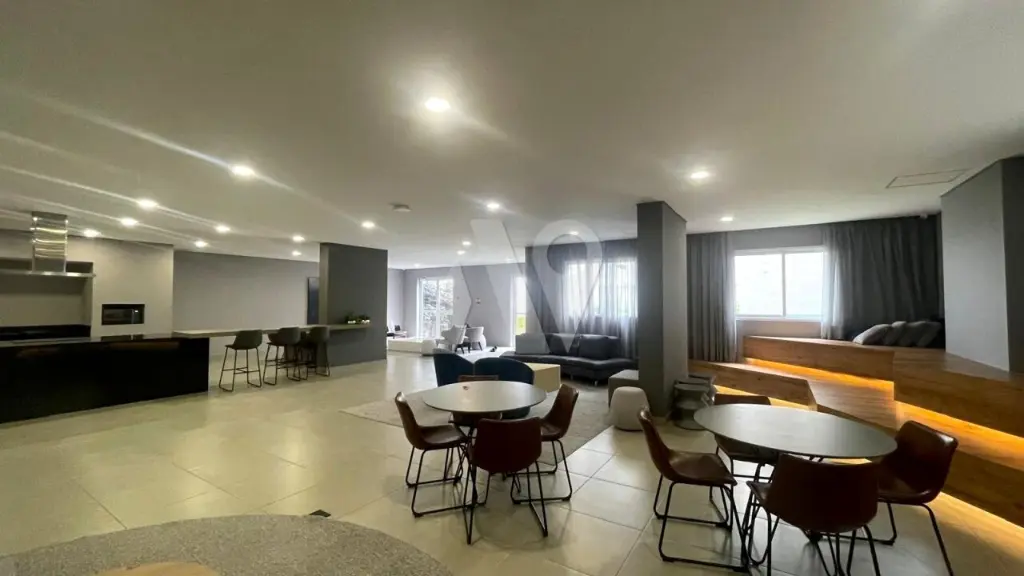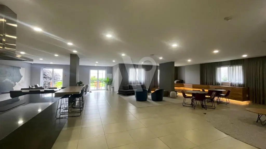 Condomínio com sala de festas, louge externo, coworking, piscina, lavanderia e academia.