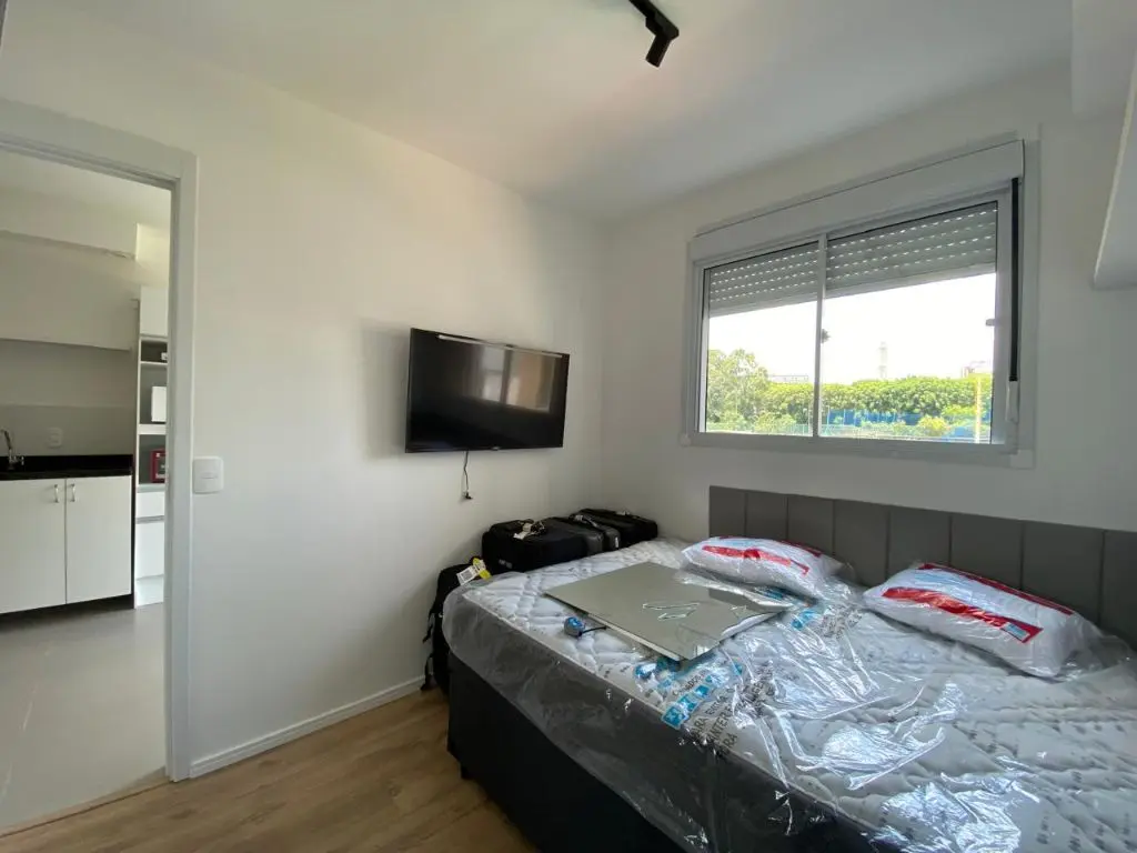 Confortável apartamento para alugar de 1 dormitório com 1 banheiro, cozinha, lavanderia e sala. Acesso 24 horas, área de serviço e proximidade com shopping, transporte público e vias de acesso. Não perca essa oportunidade! Agende sua visita agora!