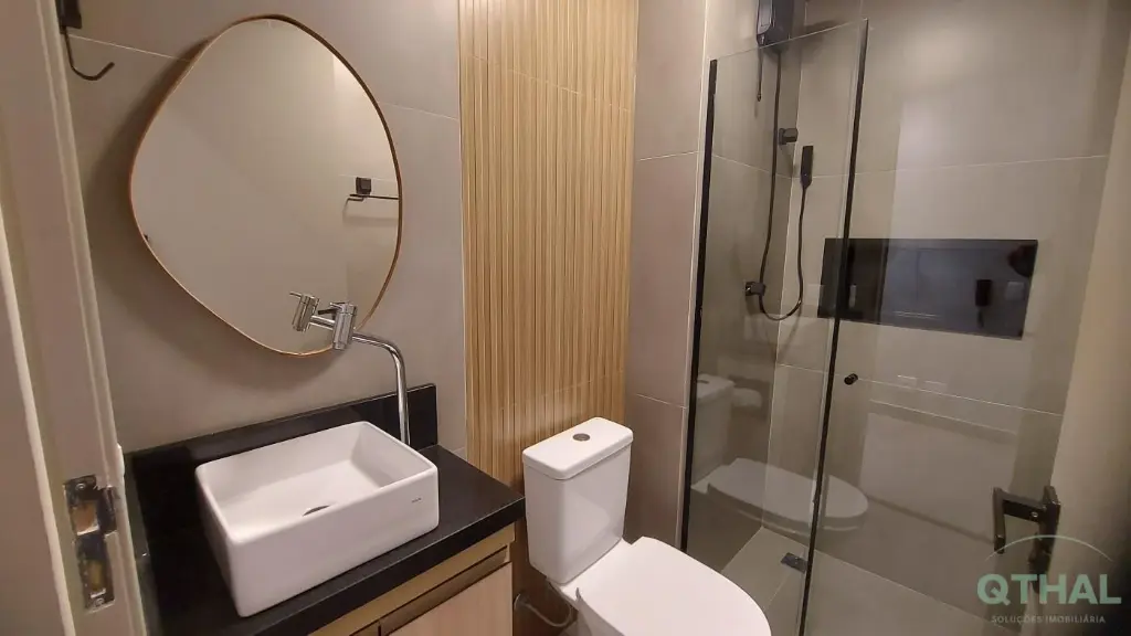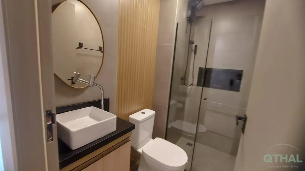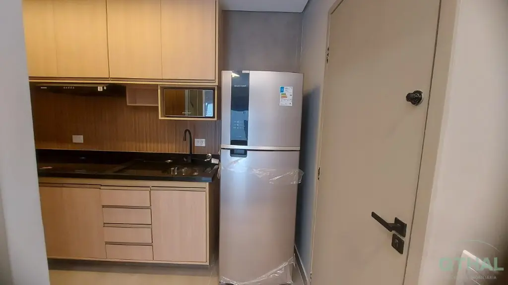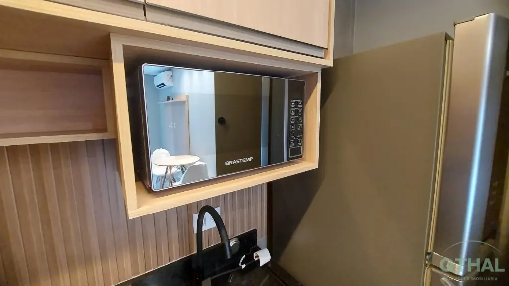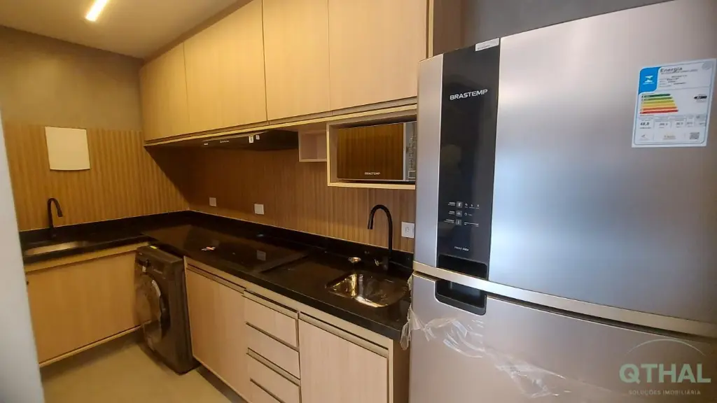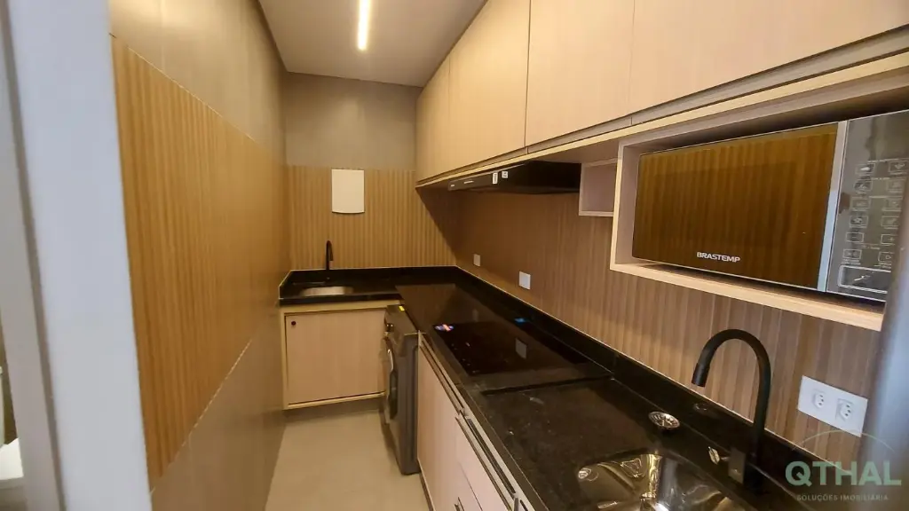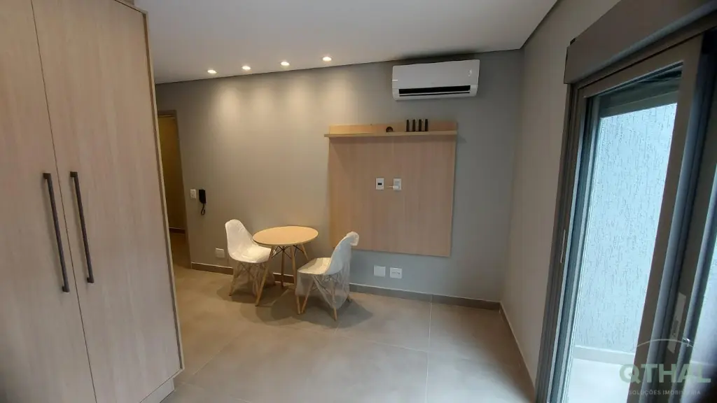 Totalmente mobiliado e equipado com itens de primeira linha: Como Sofá contemporâneo, Mesa de jantar com 2 cadeiras, Rack, Ar-condicionado no dormitório, Geladeira premium, Cooktop 4 bocas, Lava e seca, Sugar, Marcenaria planejada na cozinha e no quarto.