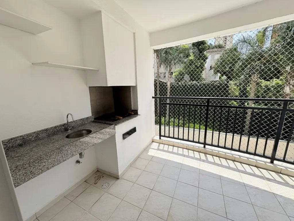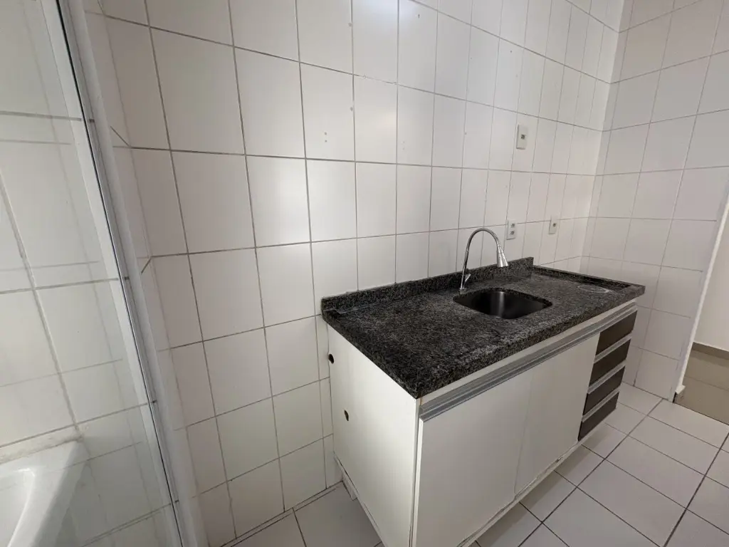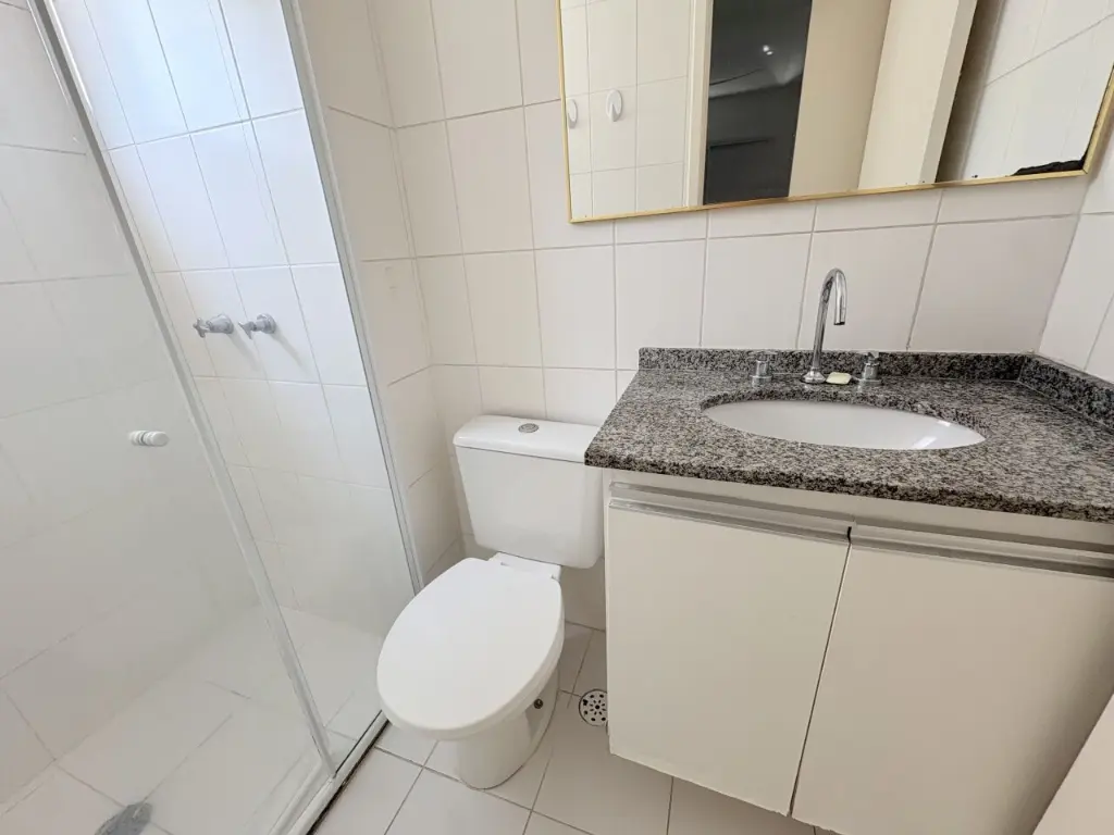 Apartamento com varanda gourmet possui 2 quartos, sendo 1 suíte, 2 banheiros, cozinha americana e 1 vaga.
