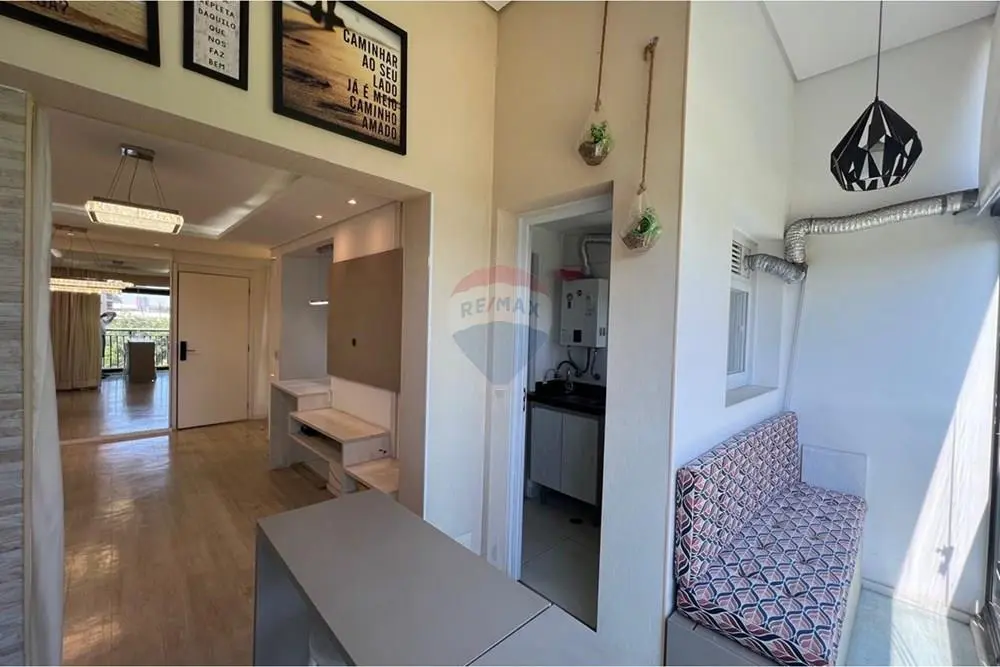 A cozinha americana, integrada ao living, traz modernidade e funcionalidade ao dia a dia, enquanto a lavanderia completa o conjunto com praticidade. Todos os ambientes possuem móveis planejados, garantindo organização, sofisticação e melhor aproveitamento dos espaços. O imóvel conta ainda com 2 vagas de garagem demarcadas, oferecendo mais comodidade.