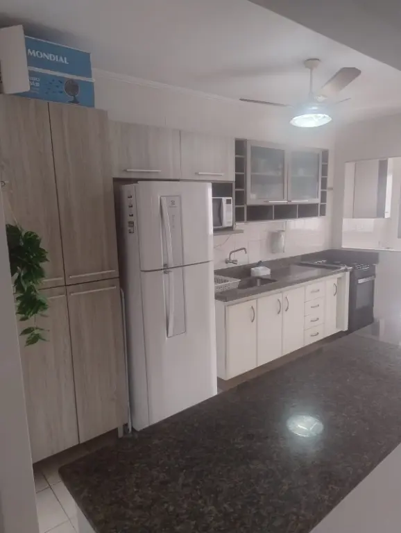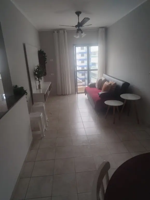 Ótimo imóvel a apenas 70 metros da praia no bairro Aviação - Praia Grande com dois quartos, uma suíte, sala dois ambientes, cozinha, lavanderia separada com máquina lava e seca, varanda nos quartos e sala, sendo que nos quartos propicia a vista parcial do mar e uma vaga de garagem. O prédio dispõe de salão de festas com churrasqueira na cobertura com vista para o mar. Apartamento será alugado totalmente mobiliado e o proprietário aceita três meses de caução.