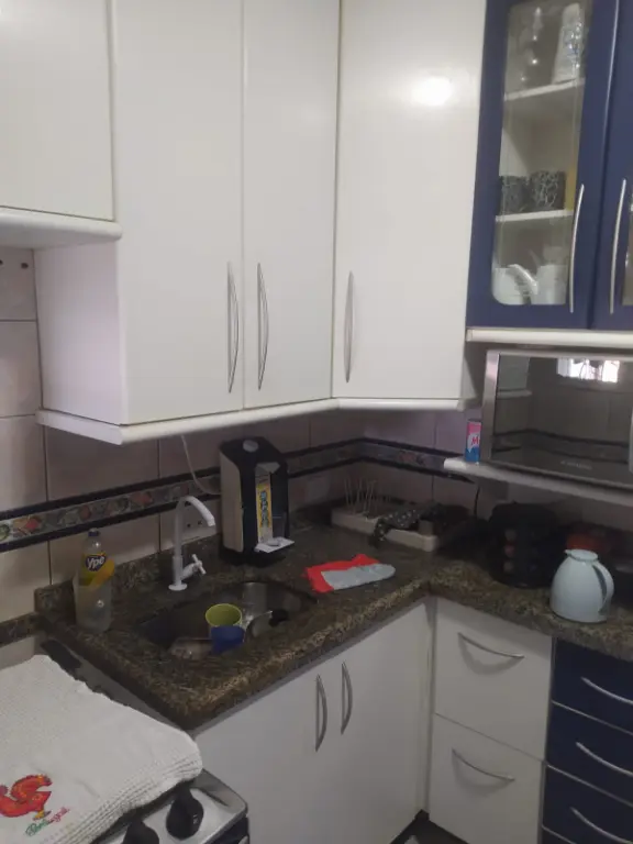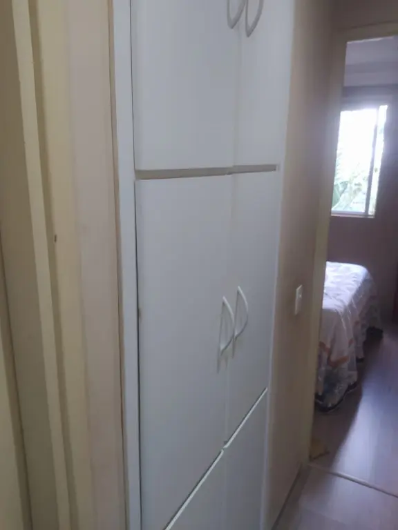 03 dormitórios, sala 2 ambientes, cozinha, wc social, ar. de serviço 01 vaga. Armários na cozinha e um dormitório.