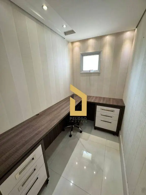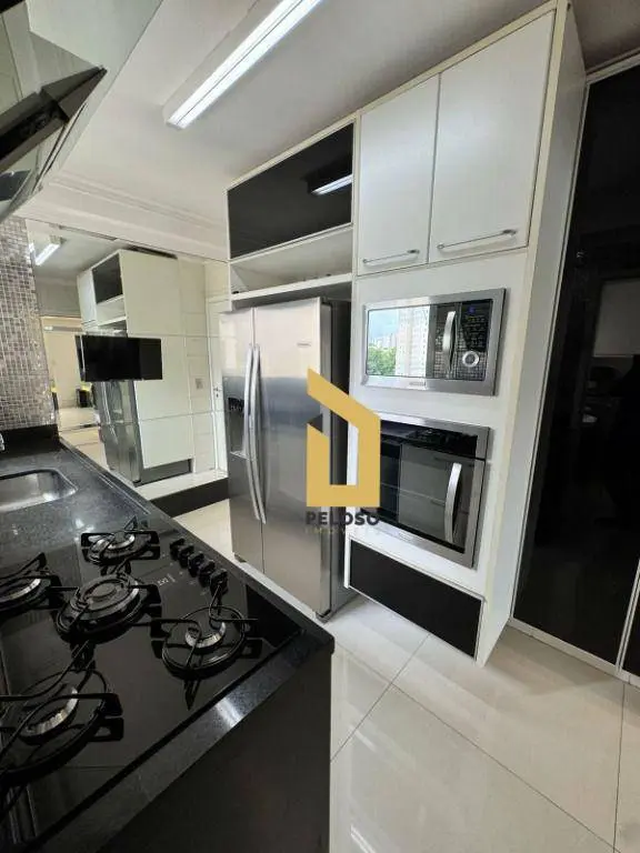 3 dormitórios sendo 1 suíte, sala ampla para 2 ambientes, 4 banheiros, escritório, cozinha planejada com torre quente e área de serviço.