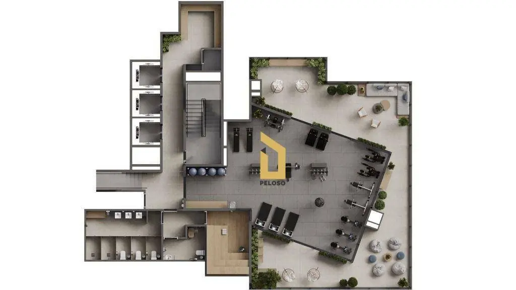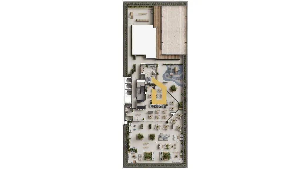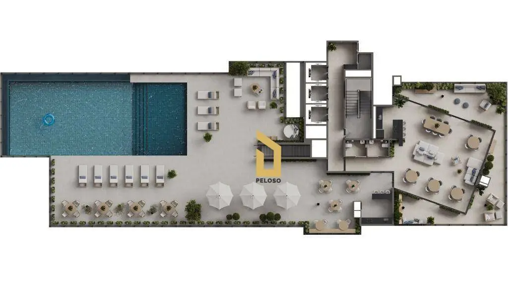Área de lazer com: Quadra de areia, piscina, academia, salão de festas