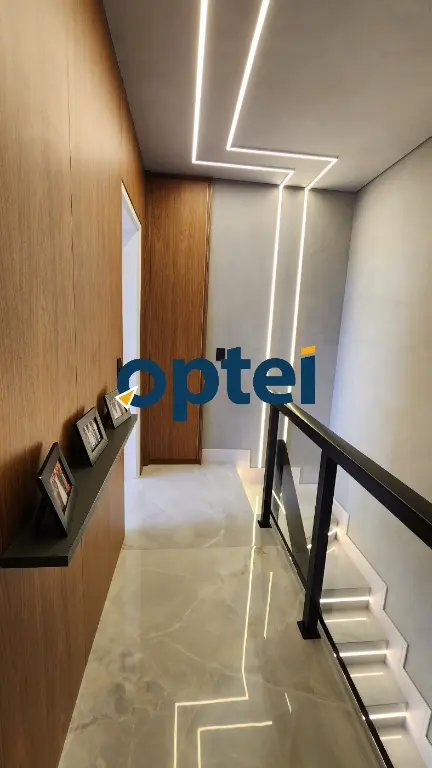 Subindo as escadas com led, no corredor tem armários