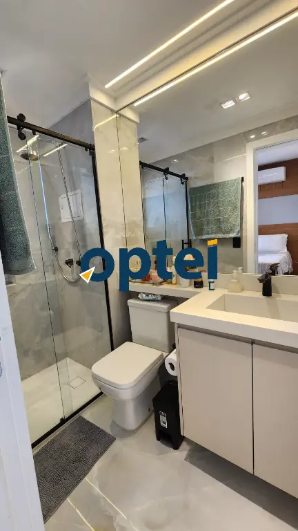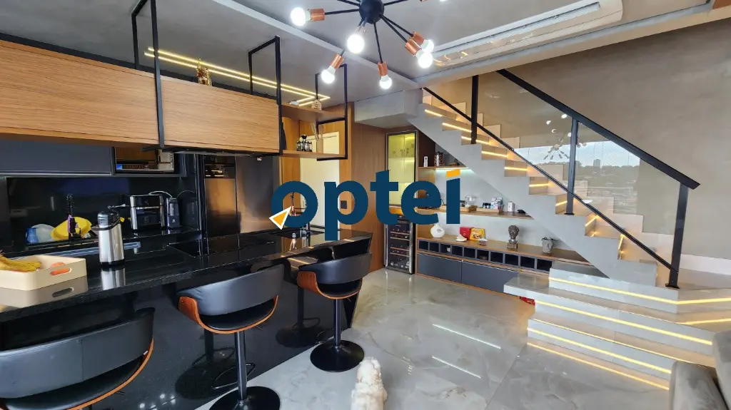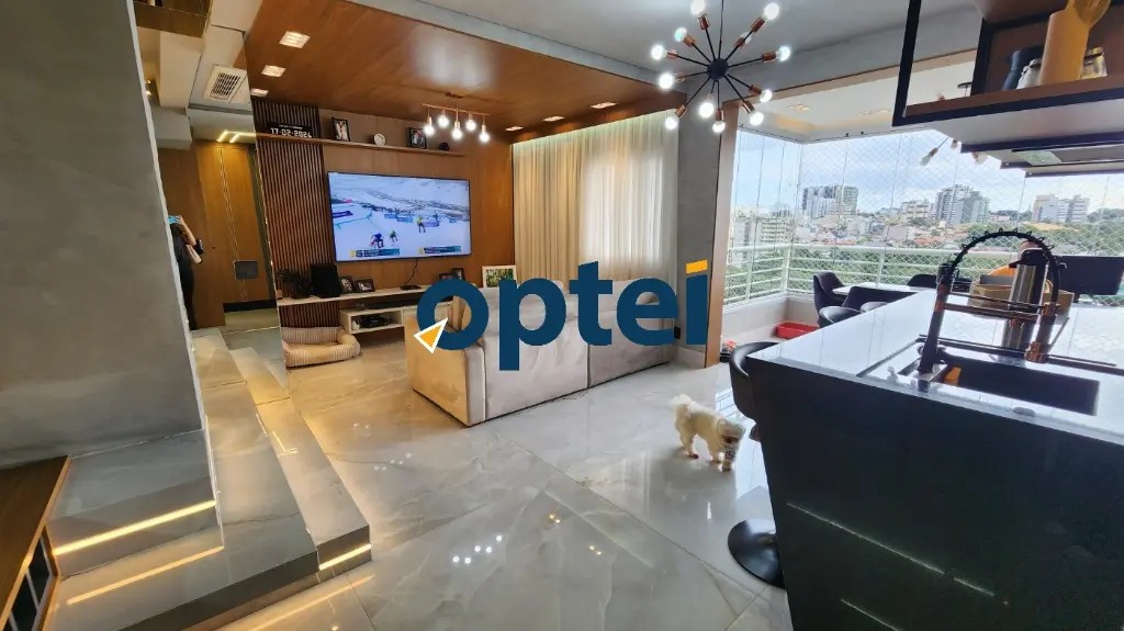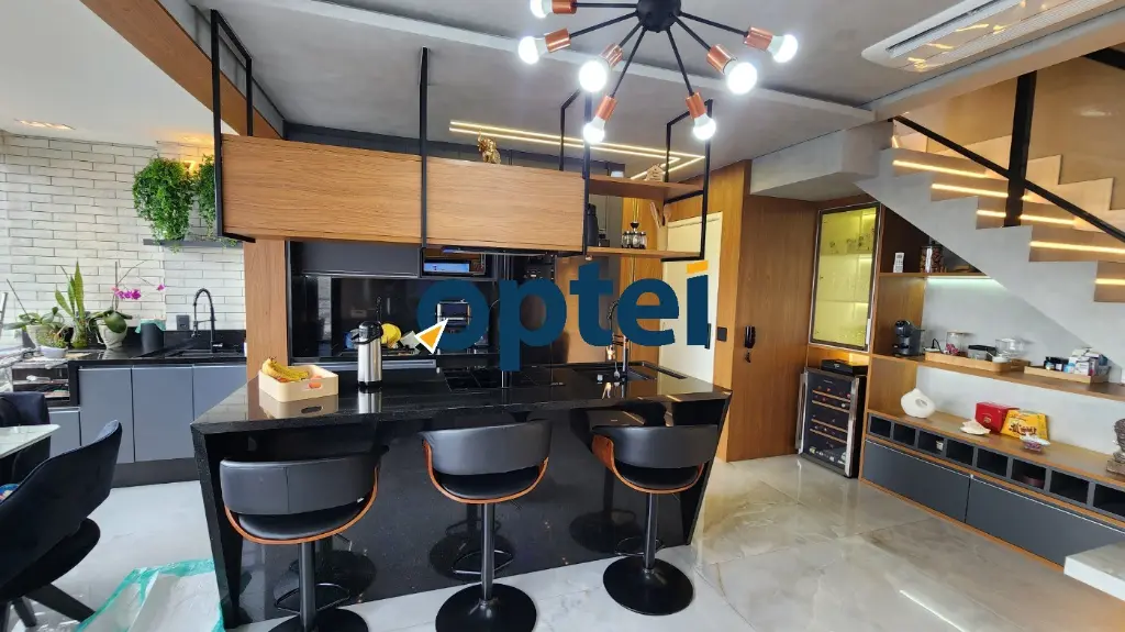 O apartamento é todo mobiliado com móveis planejados de primeira linha, proporcionando conforto e praticidade no dia a dia. Cozinha americana com bancada em ilha, sacada integrada com churrasqueira elétrica, e sala de tv ampla com lavabo