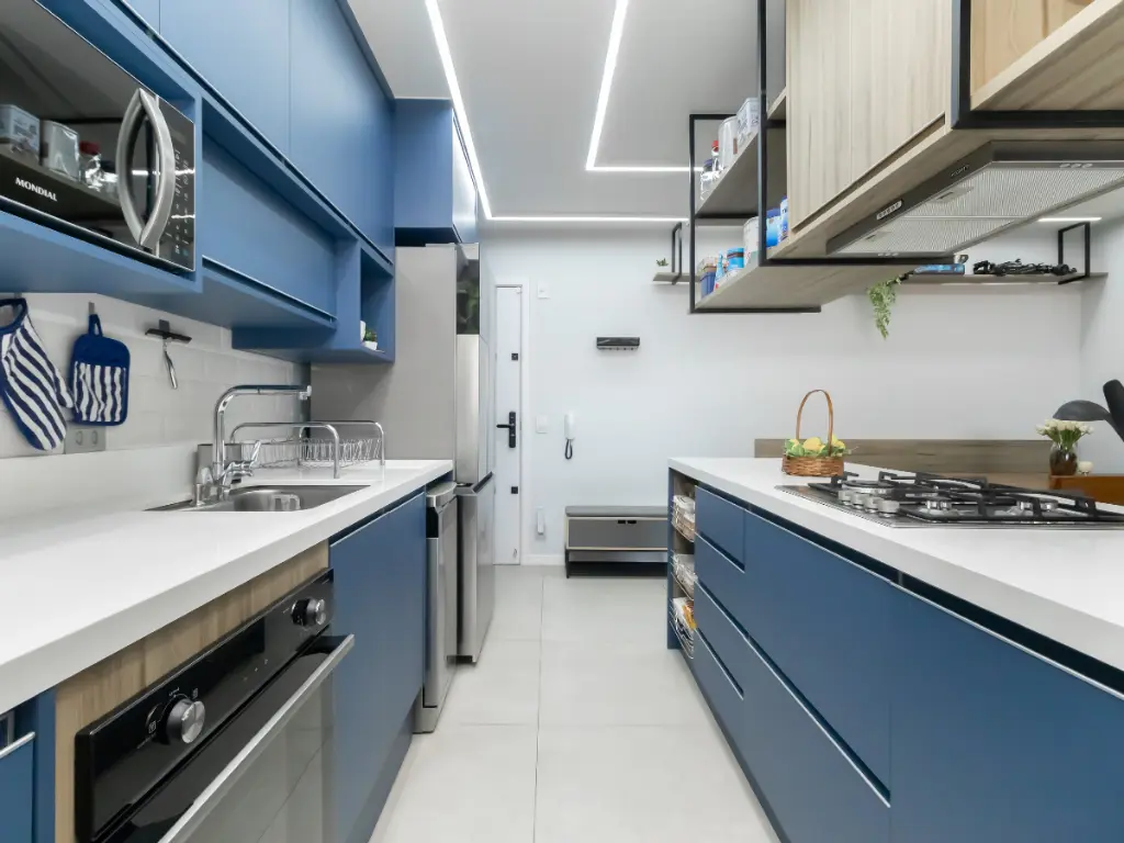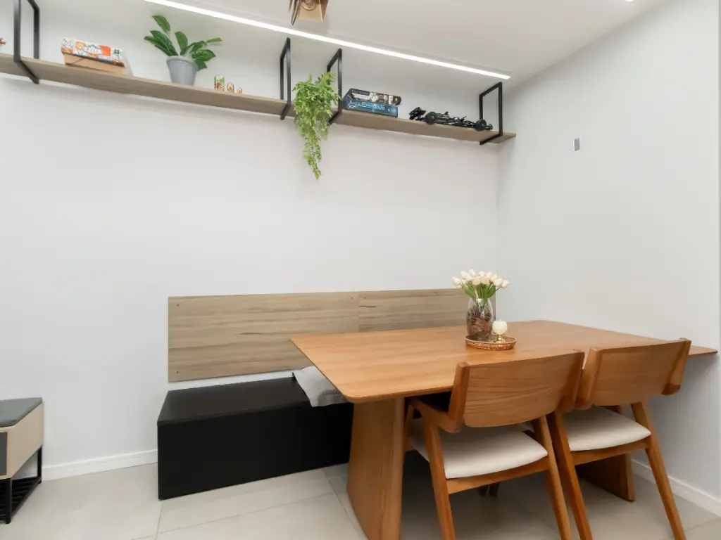 A cozinha americana, prática e funcional, integra-se à lavanderia, otimizando o espaço e facilitando a rotina do dia a dia. Para ainda mais conforto, a pia da cozinha conta com triturador de alimentos, trazendo mais praticidade, higiene e modernidade ao ambiente.