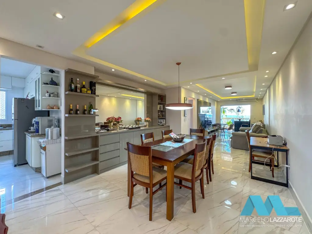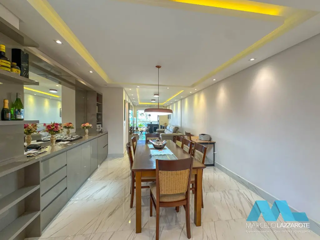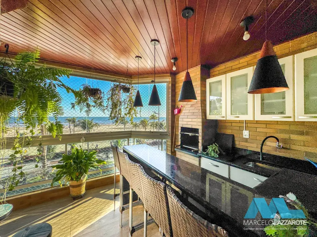 Apartamento com vista para o mar de 131 m² de área útil, com 3 dormitórios sendo 2 suítes, sala integrada com a sacada gourmet decorada de frente mar, cozinha ampla, área de serviço, banheiro social, banheiro de serviço, e 2 vagas de garagem demarcadas garantindo a segurança do seu veículo.