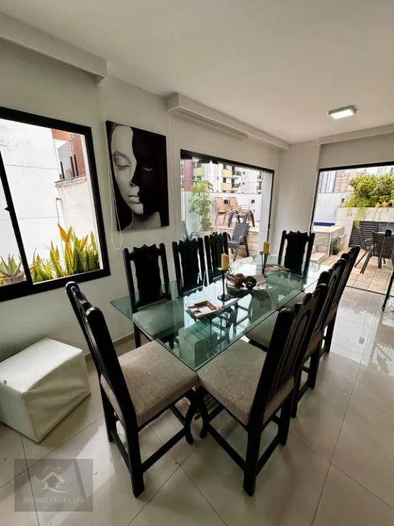 03 dormitórios, sendo uma suíte, 03 vagas na garagem, espaço externo particular, que oferece uma churrasqueira e uma piscina.