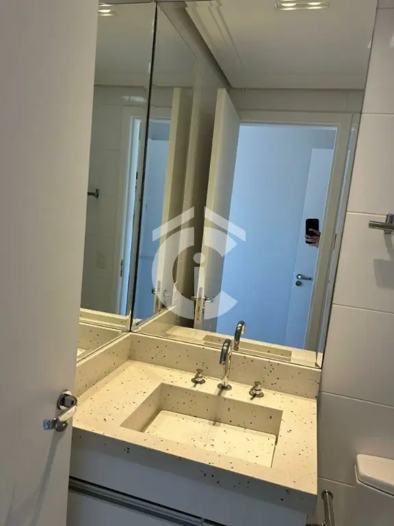 Apartamento com 104 m², 2 suítes sendo1 suíte Master com closet e dois banheiros. Ampla sala de estar e jantar com piso em porcelanato, Cozinha americana planejada, forno, cooktop e micro-ondas, lavanderia com armários planejados e tanque embutido, contando também com espaço para lava e seca e varal sob medida. Banheiros elegantes com gabinetes novos e lavatórios esculpidos em quartzo.