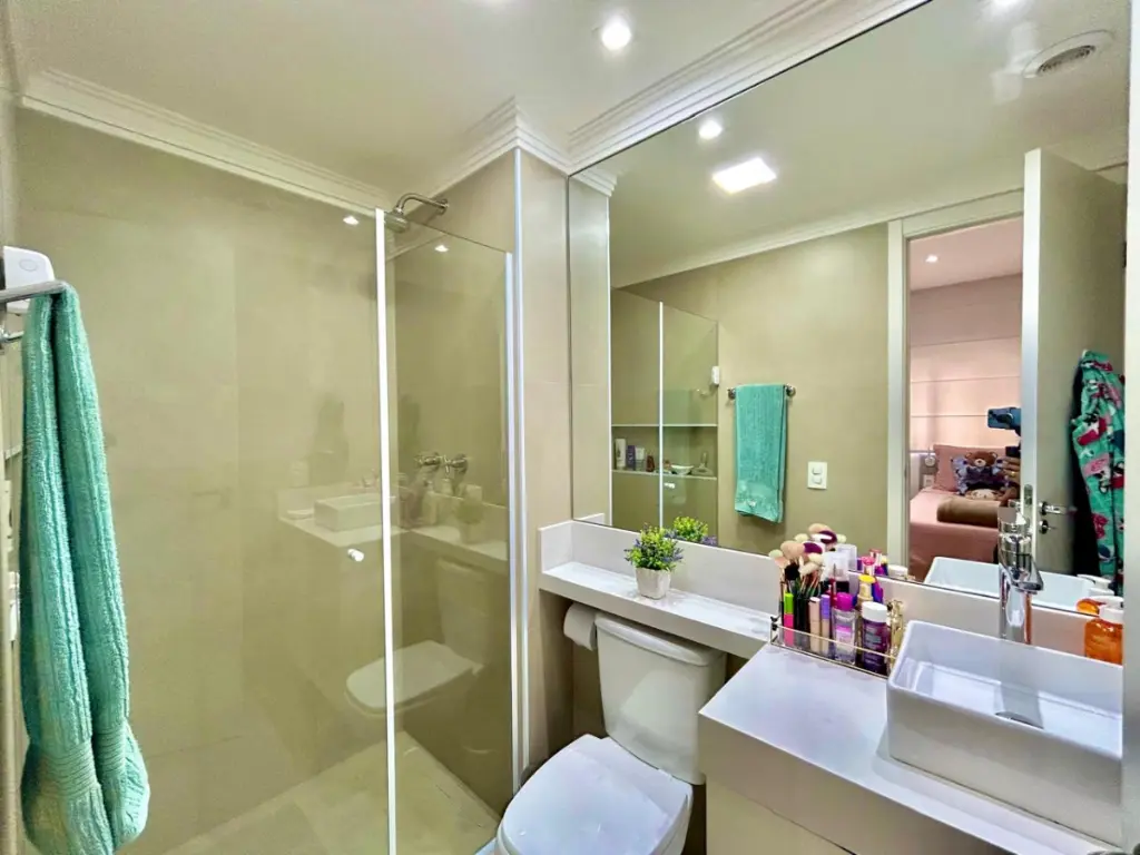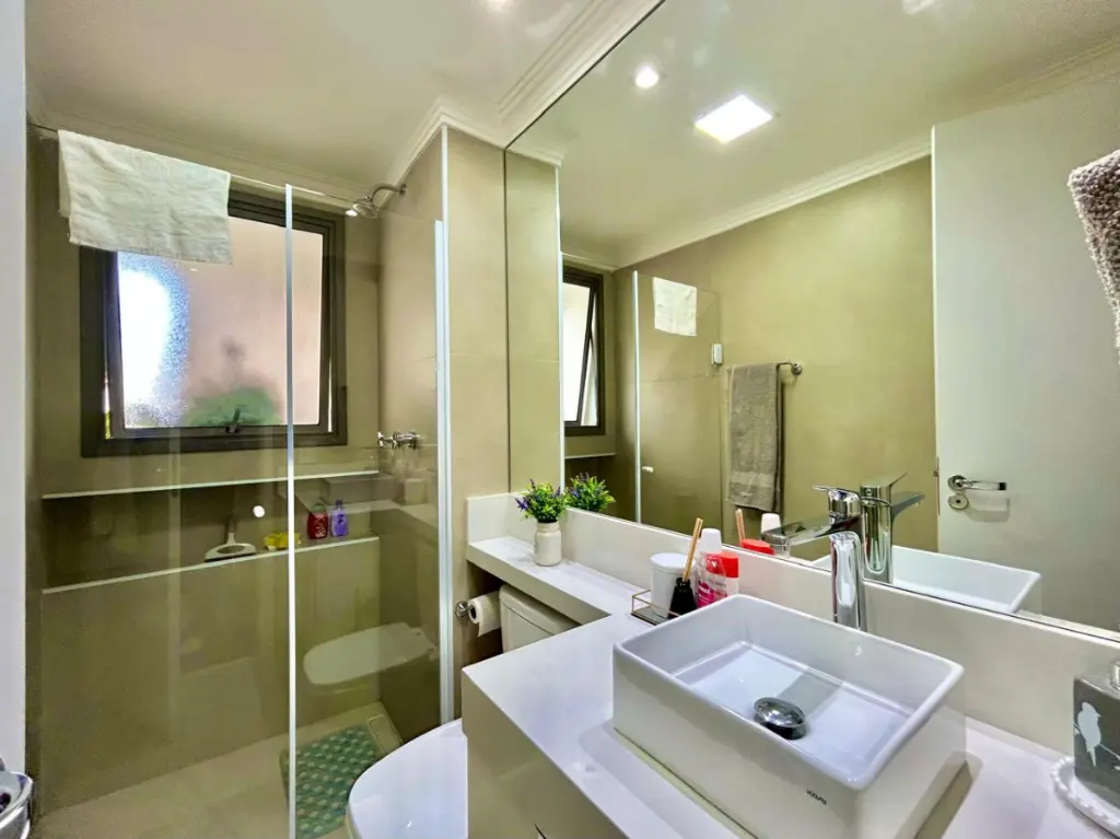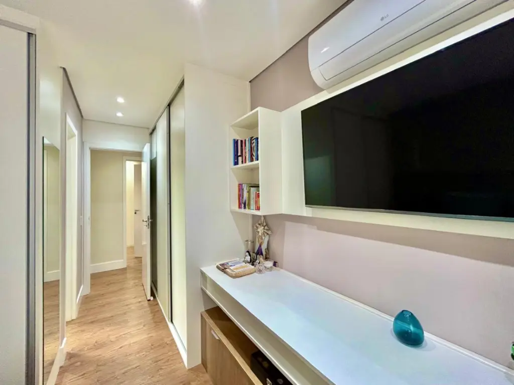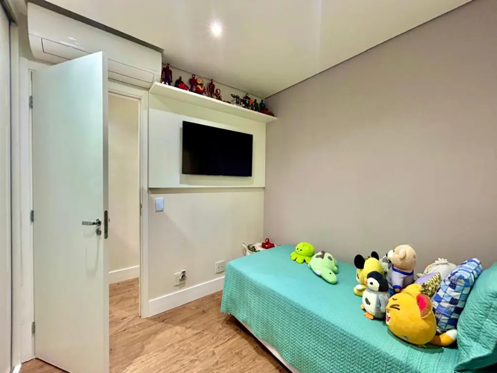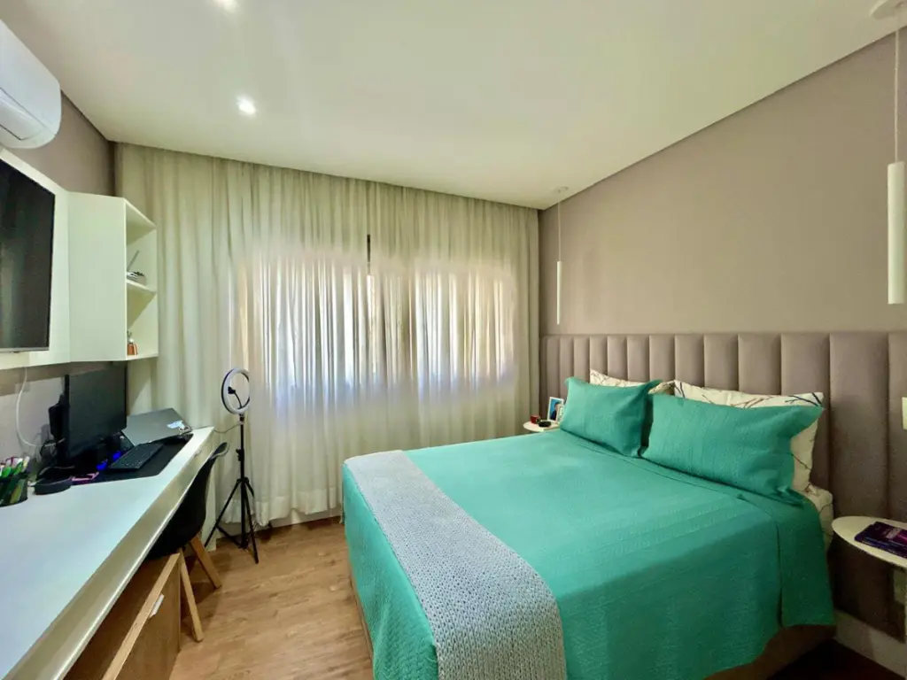 O condomínio oferece infraestrutura de alto padrão, com piscina climatizada com raia de 25 metros, academia ampla com pé-direito duplo, sauna, salão de festas com aproximadamente 200 m², salão gourmet, churrasqueira, brinquedoteca, playground, quadra poliesportiva, sala de estudos, pet place e portaria 24 horas, garantindo segurança e comodidade para toda a família.
