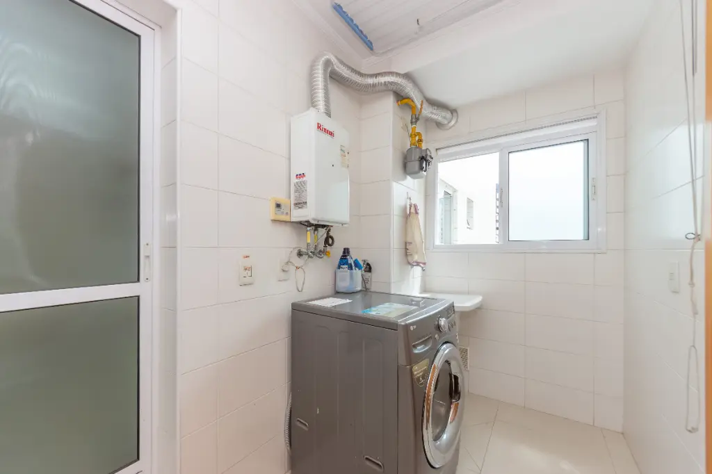 A área de serviço é completa e funcional, contando com lavanderia, quarto e banheiro de apoio, ideal para organização e apoio doméstico.