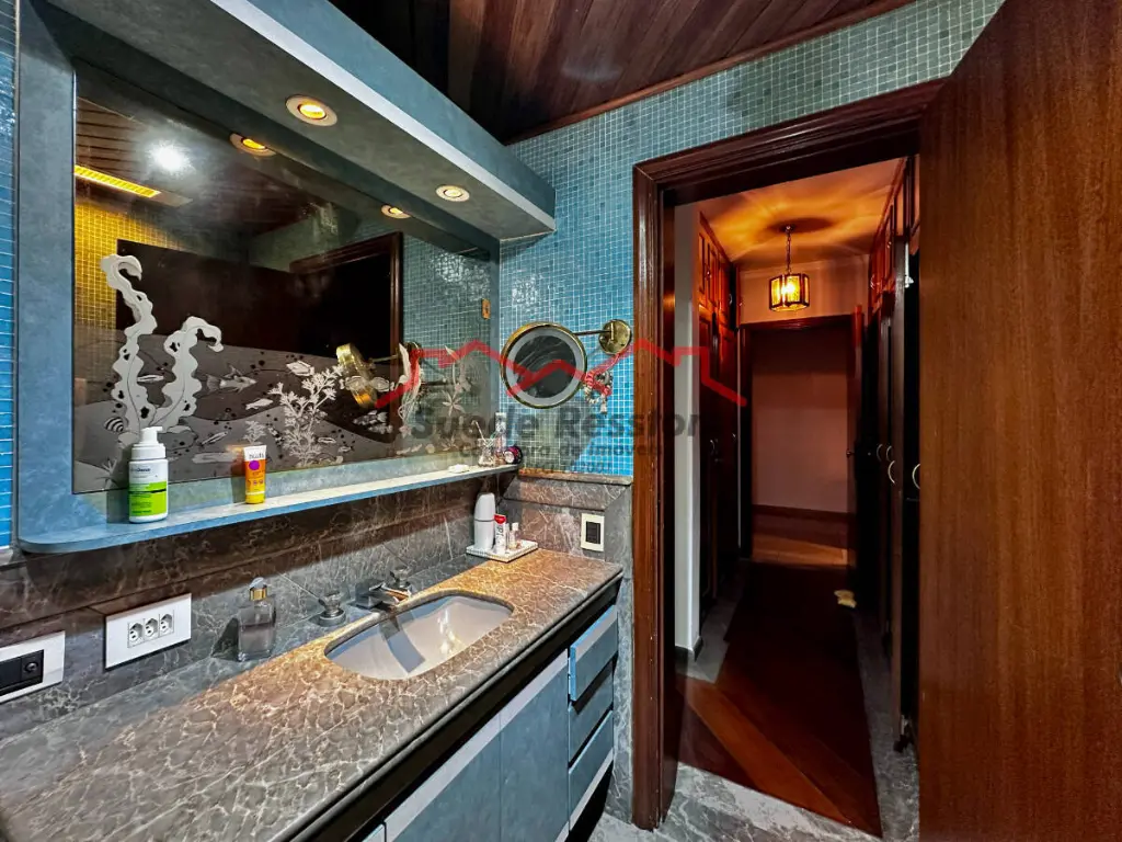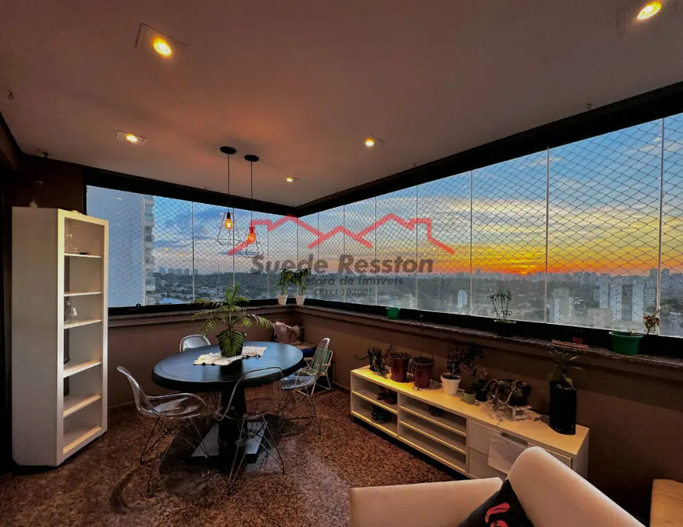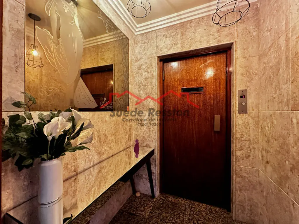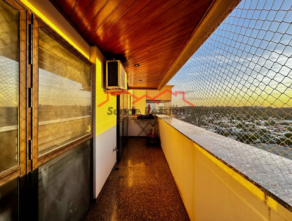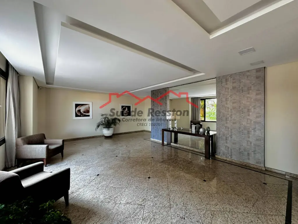 A ampla sala de estar com sacada oferece vistas deslumbrantes e é ideal para receber convidados. Ar condicionado em 2 ambientes. A cozinha grande, equipada com armários embutidos, garante praticidade no dia a dia. O imóvel dispõe também de dependência de empregada, área de serviço e lavanderia bem equipada.