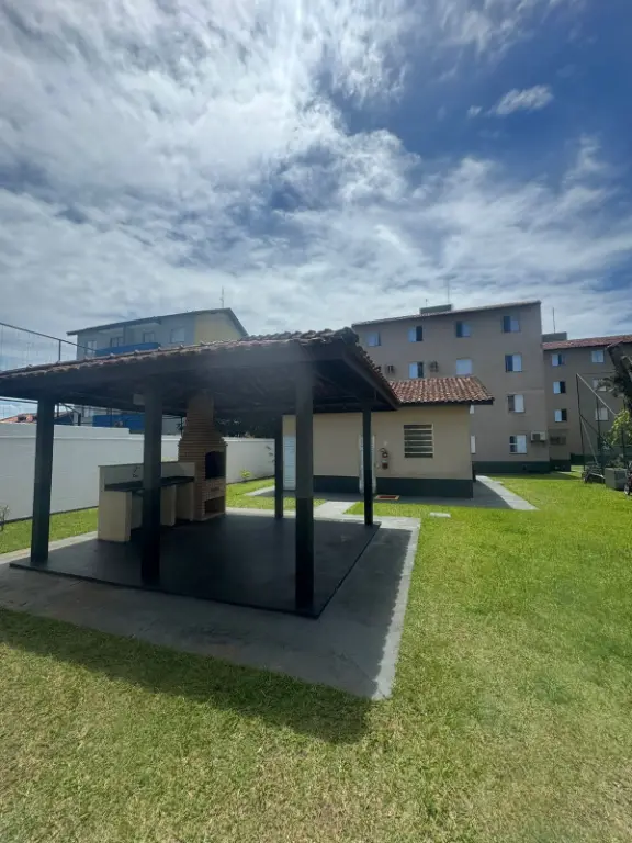 Portão automatizado, sem elevador, guarita 24 horas, 01 vaga de veículo, quadra, churrasqueira, salão de festa