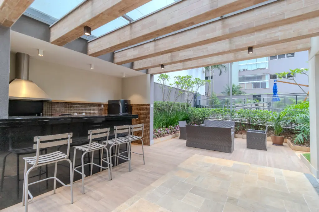 Você estará cercado por alguns dos **restaurantes mais renomados da cidade**, como **Baby Beef Jardim, Coco Bambu, Madero, Outback Steakhouse, Almanara e Pecorino**, além de cafés charmosos e bistrôs autorais que fazem do Bairro Jardim um verdadeiro polo gastronômico. Um convite diário para viver experiências memoráveis sem sair do bairro.