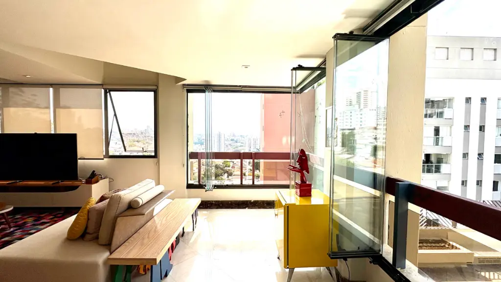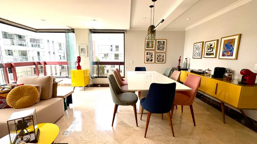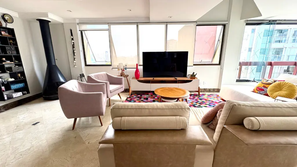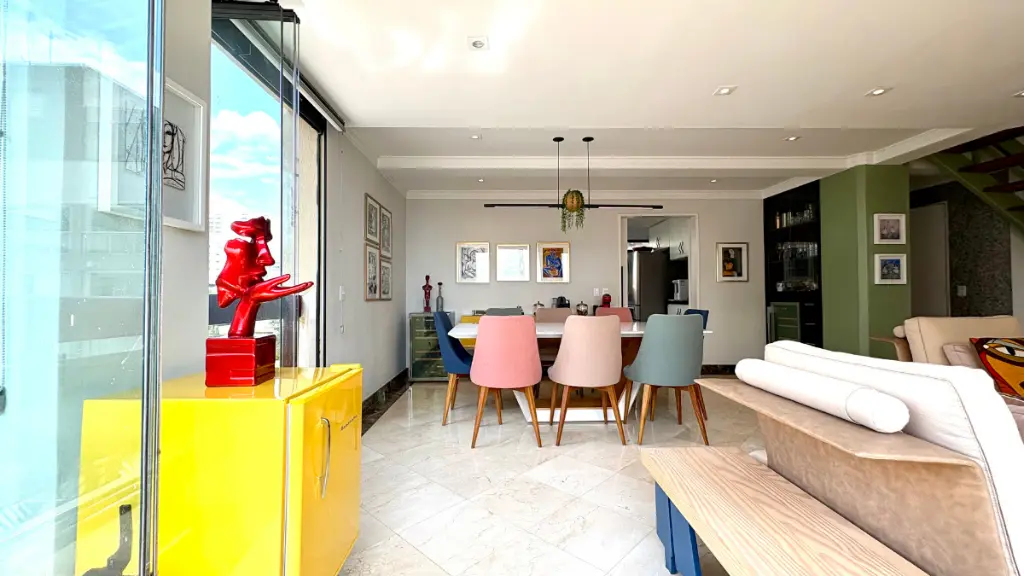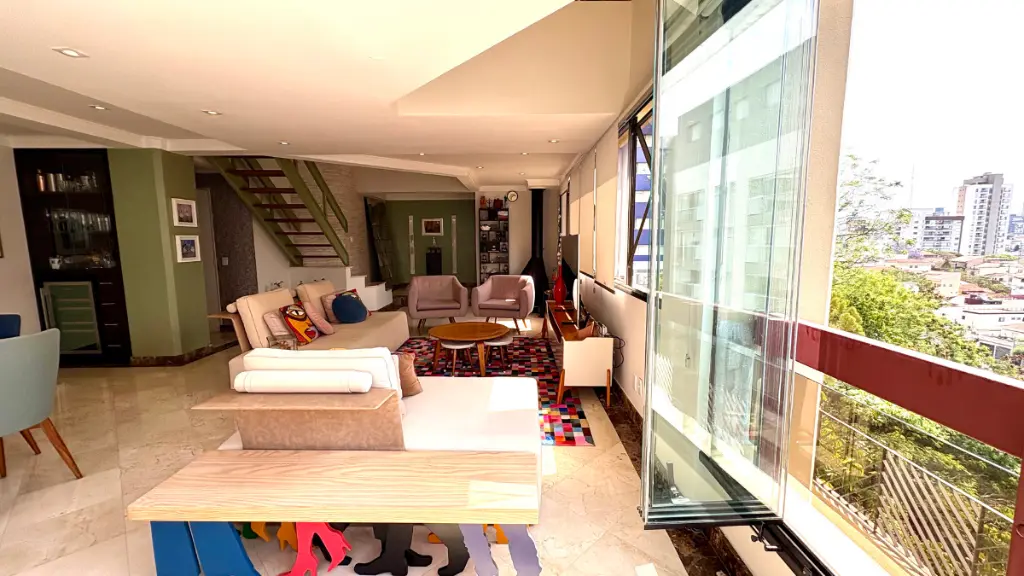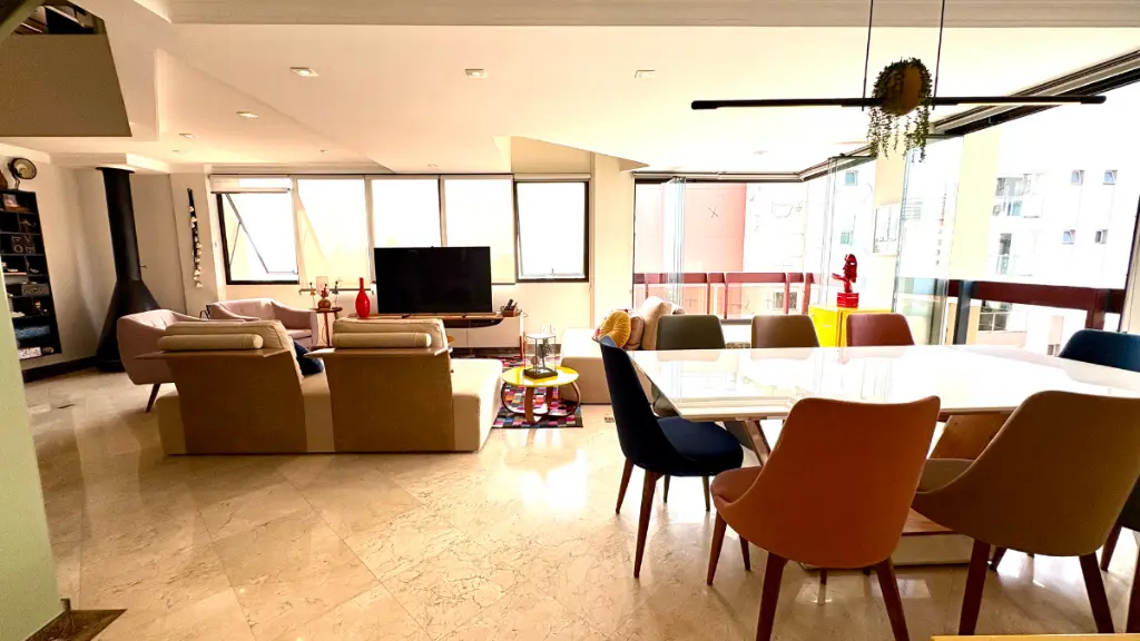 Com 210m² de puro conforto e luz natural o dia inteiro, este duplex impressiona logo na entrada com seu pé-direito duplo e uma sala ampla em quatro ambientes, que inclui lareira e integração total com a varanda e a cozinha. O projeto é elegante e funcional - cozinha espaçosa com ilha central, acabamentos refinados em mármore, granito e madeira, e uma vista livre que presenteia com o pôr do sol mais bonito do bairro.