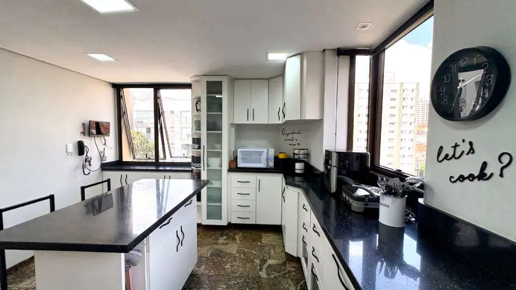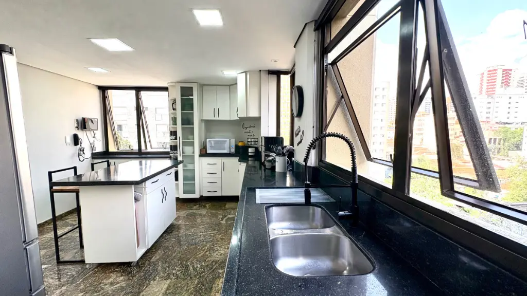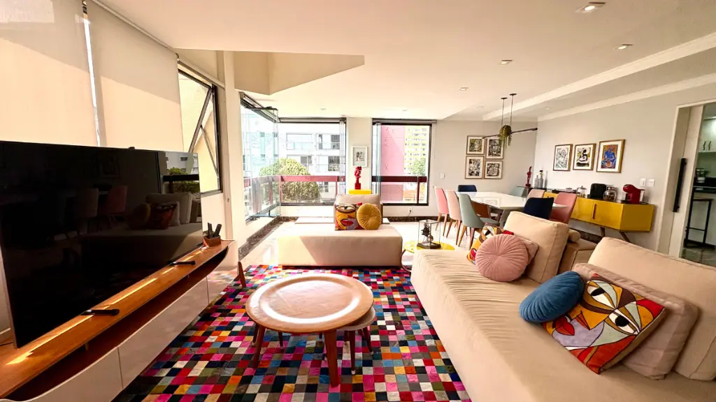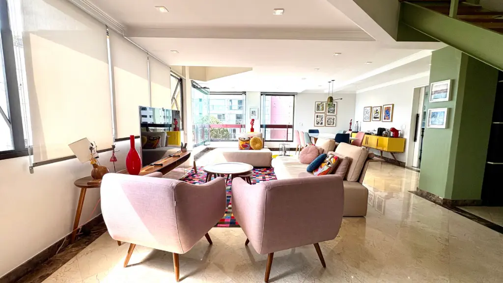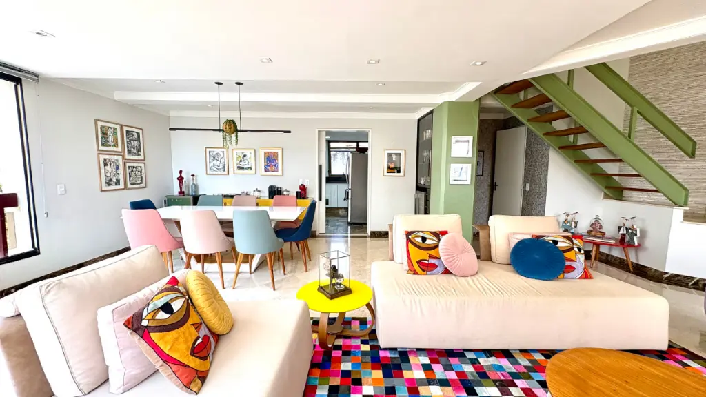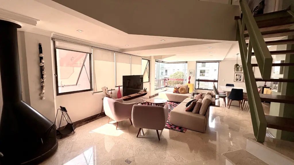 Com 210m² de puro conforto e luz natural o dia inteiro, este duplex impressiona logo na entrada com seu pé-direito duplo e uma sala ampla em quatro ambientes, que inclui lareira e integração total com a varanda e a cozinha. O projeto é elegante e funcional - cozinha espaçosa com ilha central, acabamentos refinados em mármore, granito e madeira, e uma vista livre que presenteia com o pôr do sol mais bonito do bairro.
