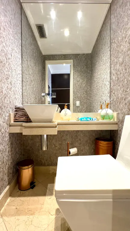 No pavimento superior, três suítes garantem conforto e privacidade, com destaque para a master, que conta com closet e banheira. Todo o mobiliário, eletrodomésticos e até algumas obras de arte permanecem no imóvel - uma verdadeira venda com porteira fechada, pronta pra morar e viver. Ainda conta com lavabo e uma dependência completa.