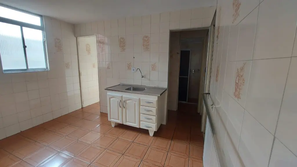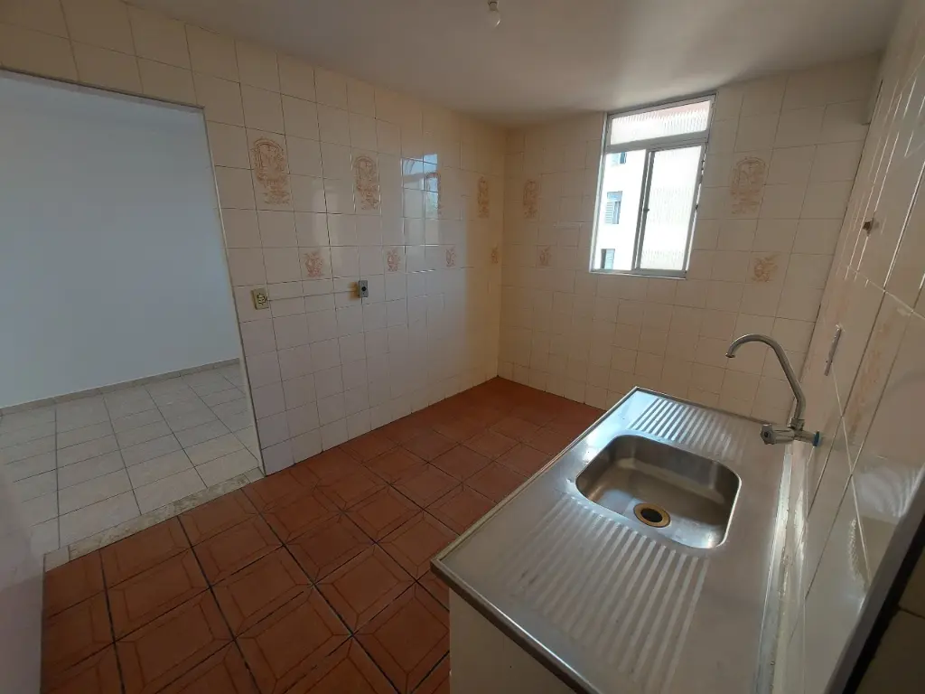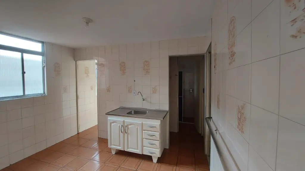 Sendo a sala ampliada, 2 dormitórios, cozinha, banheiro, área de serviço, 1 vaga.