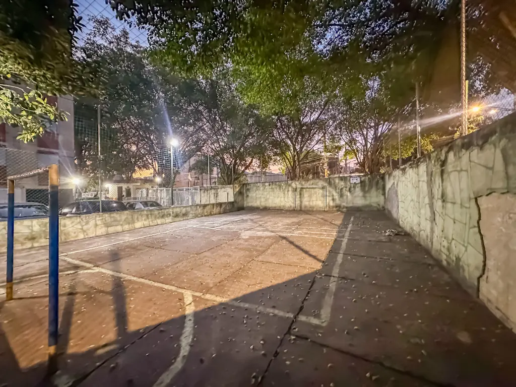 Condomínio completo com salão de festas com churrasqueira, quadra poliesportiva e playground