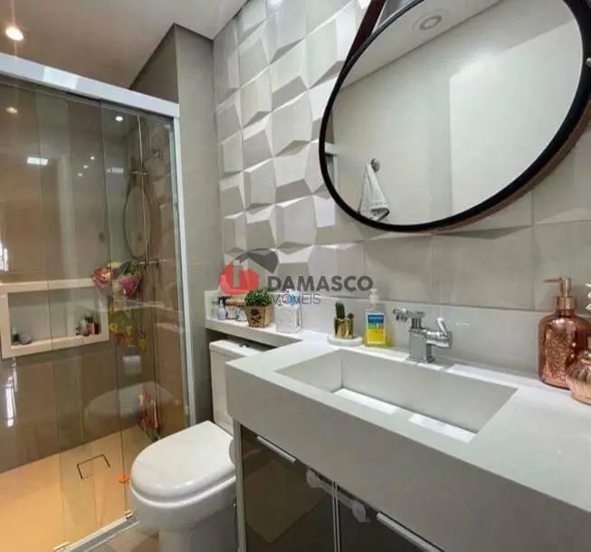 Banheiro social, com acabamentos modernos e de qualidade.