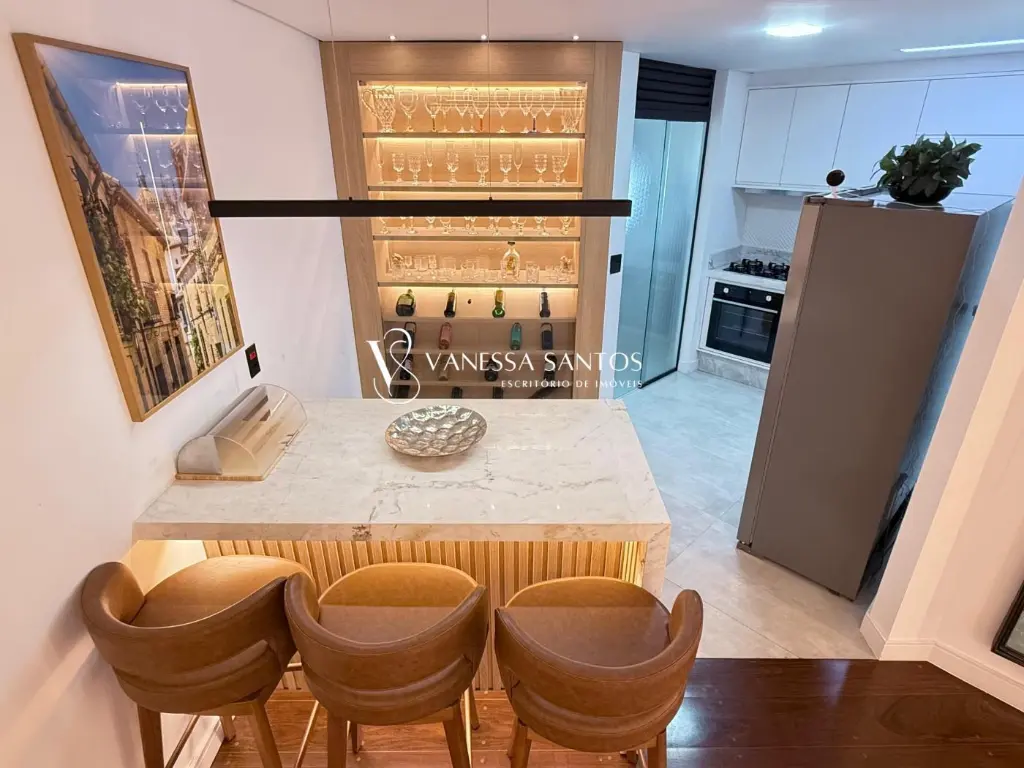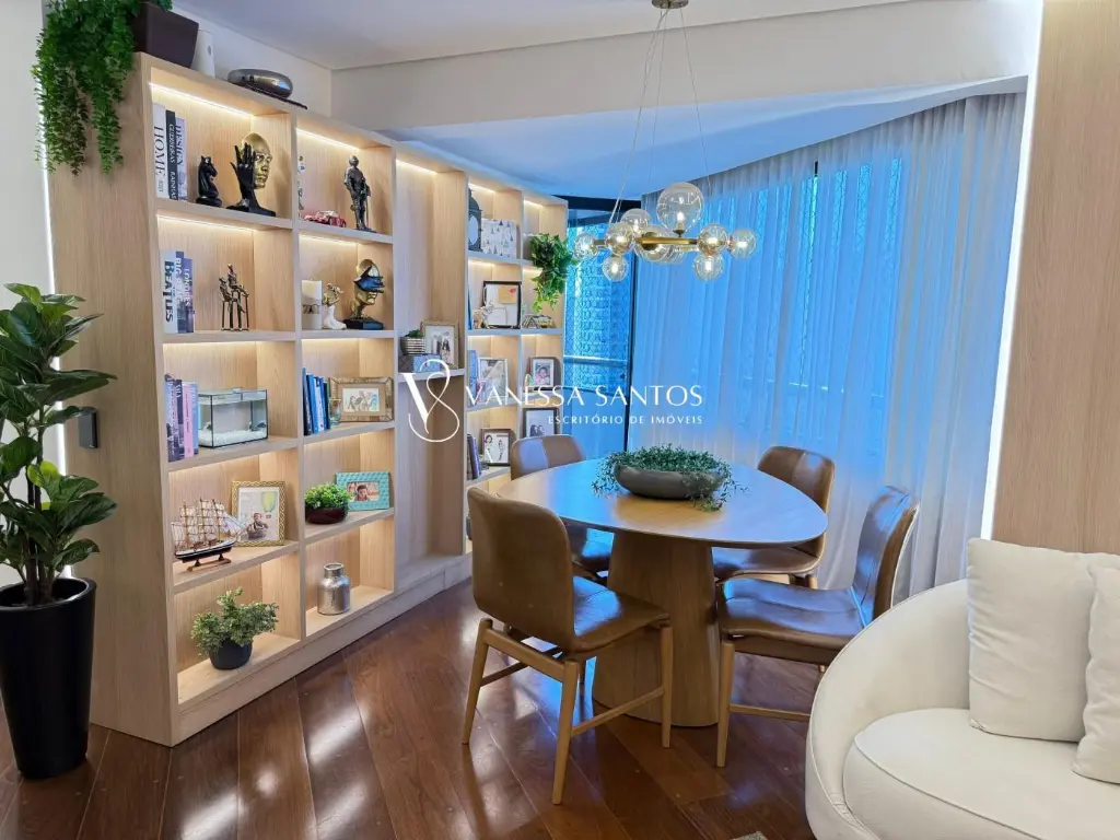Reformado, com 98m² privativos, 3 quartos sendo 1 suíte, sala ampla integrada com piso de madeira ipê, banheiro social, lavabo, cozinha planejada com forno e cooktop, bancadas em mármore em diversos ambientes, ar condicionado Inverter em todos os cômodos, iluminação em LED com automação via Alexa, box de vidro até o teto nos banheiros, 2 despensas, lavanderia, móveis planejados, 2 vagas de garagem e depósito.