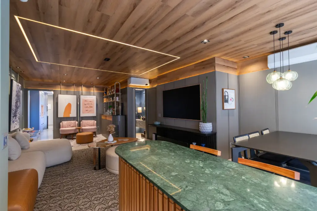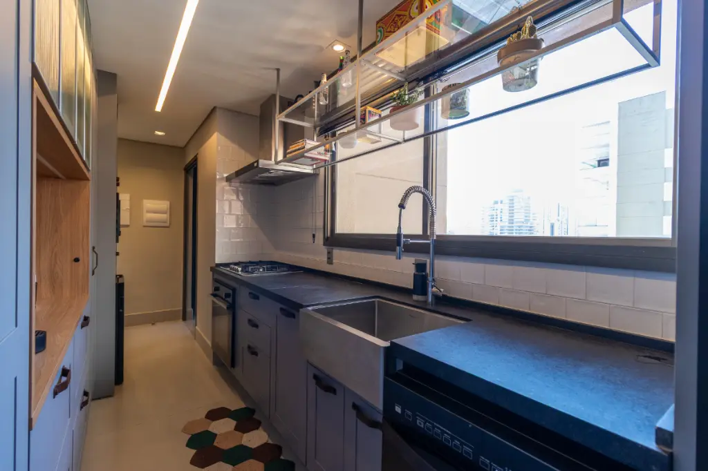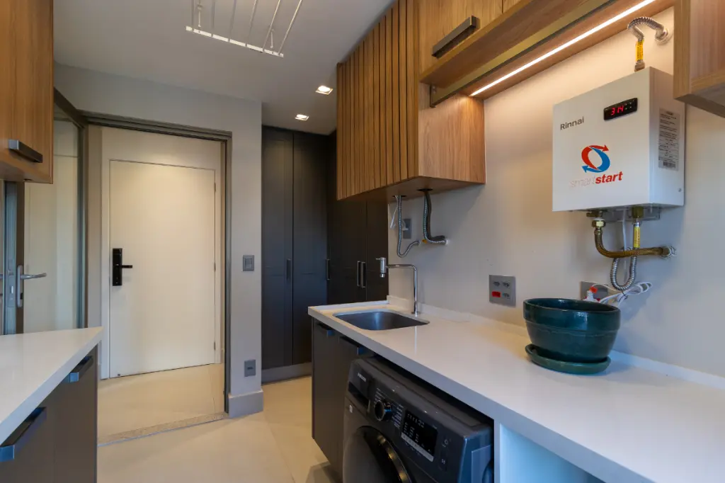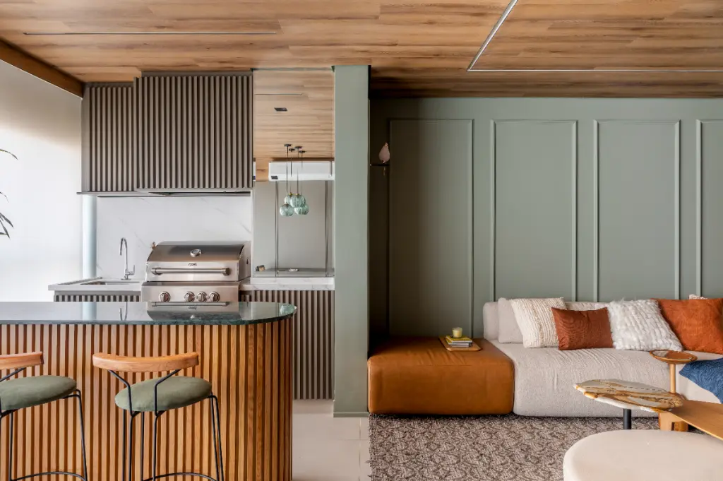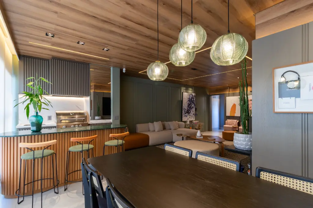 ?? A varanda gourmet traz churrasqueira à gás com dois exaustores independentes, uma solução inteligente para curtir um churrasco com amigos sem que a fumaça incomode a sala - conforto e praticidade aliados à socialização.
