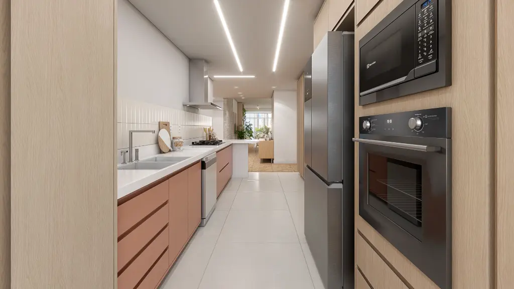 Para facilitar a vida desde o primeiro dia, o apto será entregue com marcenaria na cozinha, área de serviço e gabinetes dos banheiros, além de cooktop, coifa, forno elétrico, aquecedor a gás e ar-condicionado instalado em todos os ambientes.