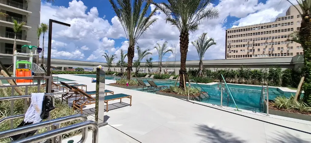 O condomínio conta com uma estrutura completa de lazer, com direito a piscina com raia de 50 metros, salão de festas com terraço, espaço fitness, lounge fitness, sala de spinning, quadra poliesportiva, quadra de areia, churrasqueira, salão de jogos, brinquedoteca, salão de festas gourmet, lounge de festas gourmet, spa com sauna, playground, deck molhado, pool house e piscina infantil.