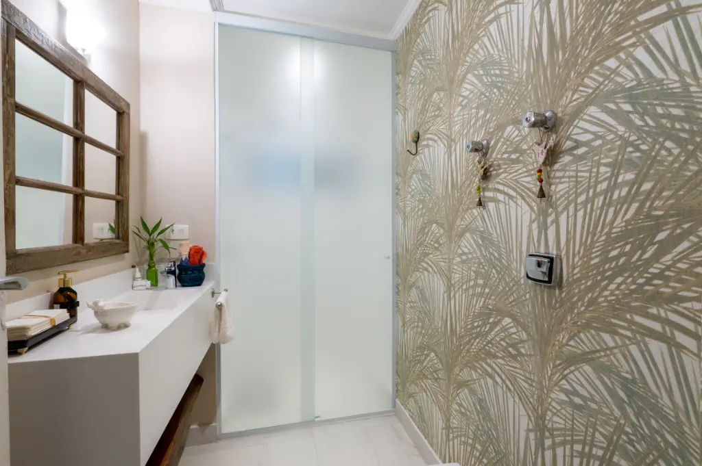 Na área íntima, temos banheiro social lindo já todo reformado, ela uniu os dois primeiros quartos, fez este incrível escritório (que pode ser facilmente revertido) grande rouparia aqui no corredor.