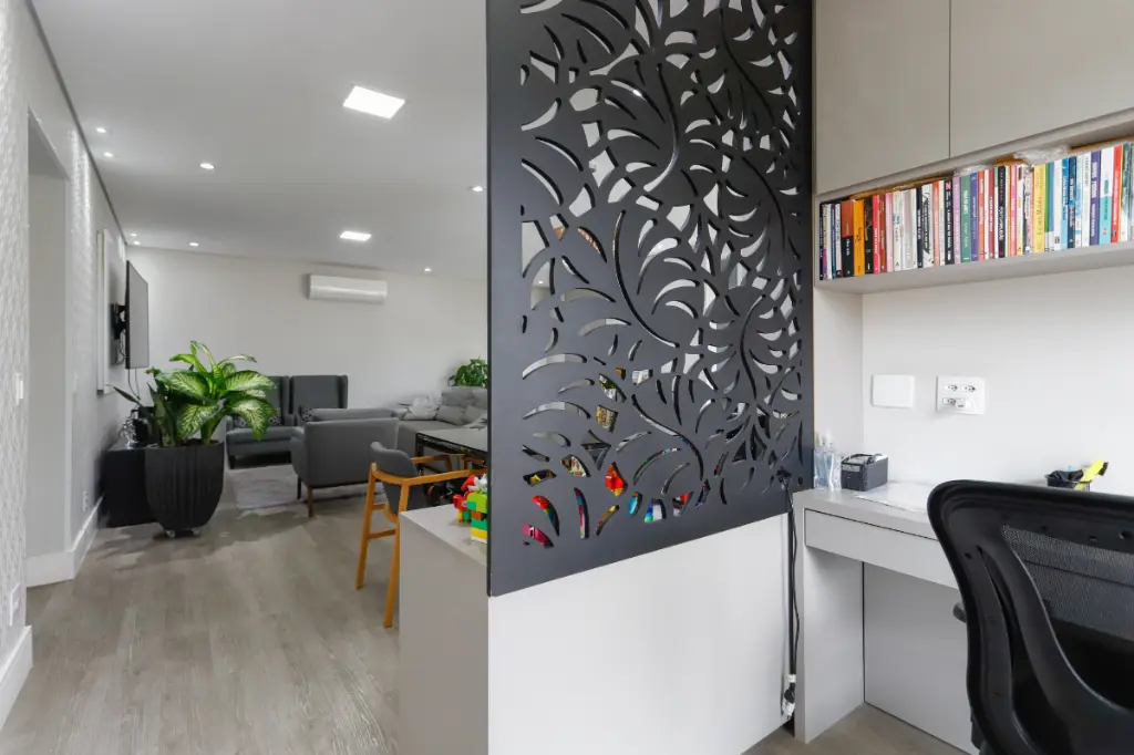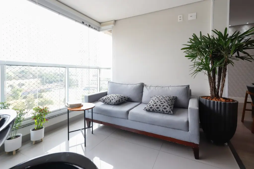 Sala ampla para 3 ambientes, com varanda integrada