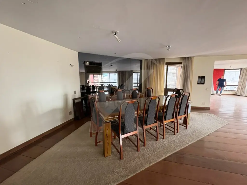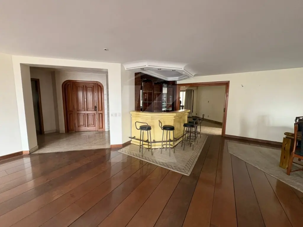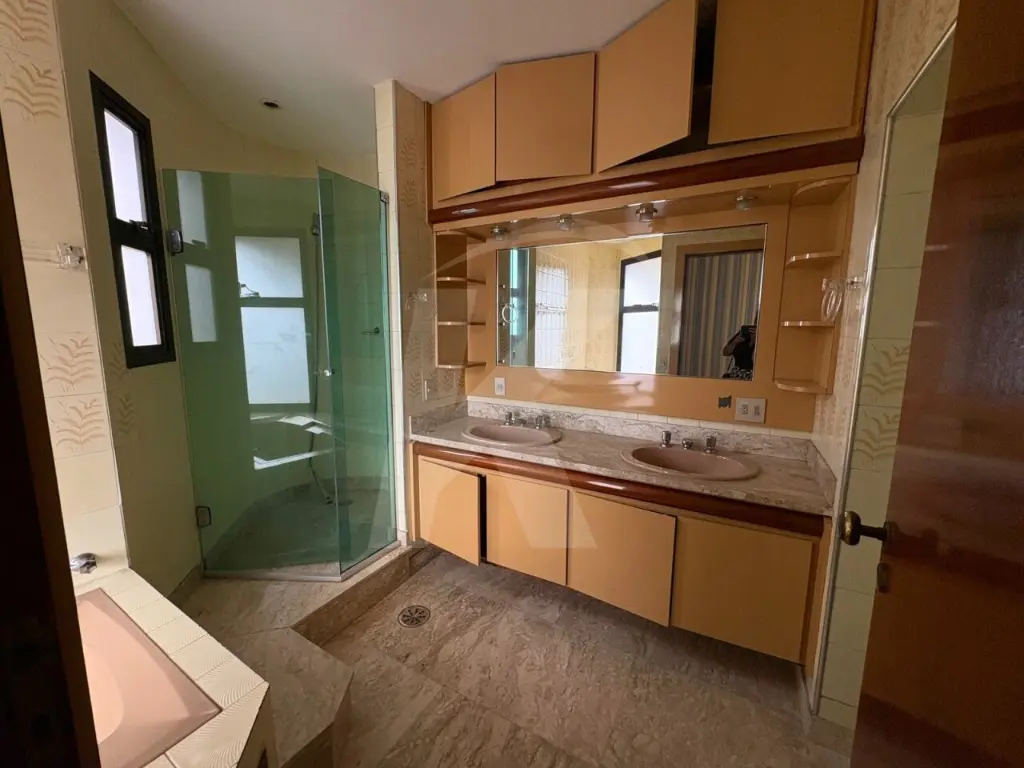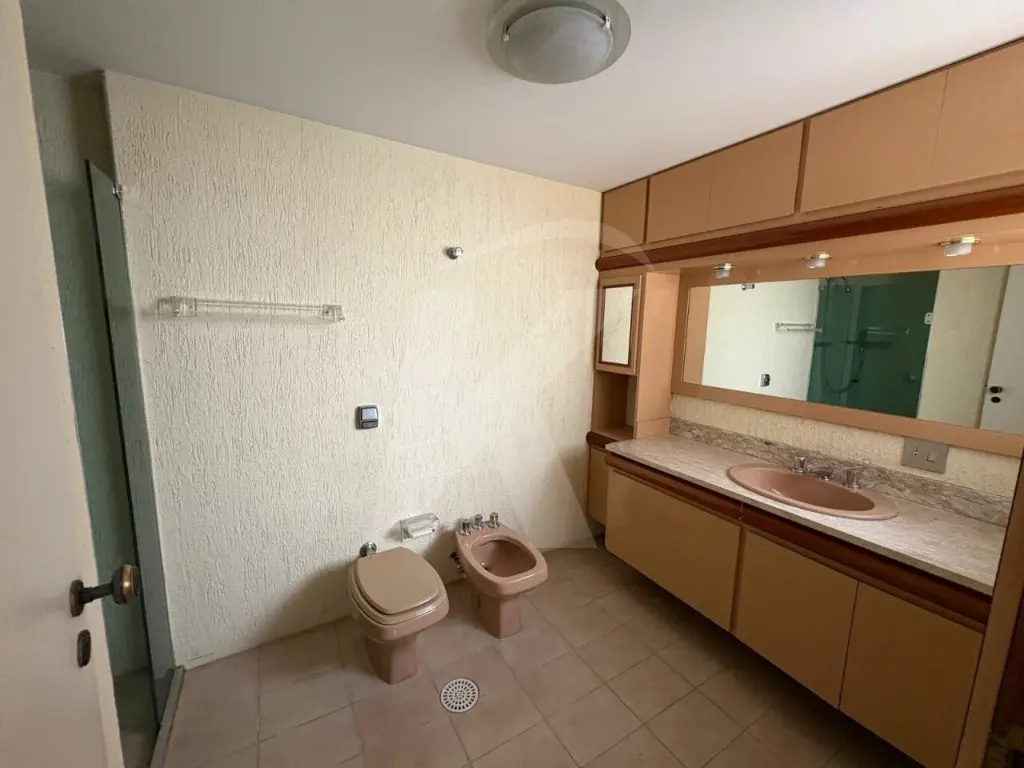 São 5 dormitórios, sendo 3 suítes. A suíte principal conta com closet, banheira e varanda estendida integrada a uma segunda suíte. Sala ampla para 4 ambientes, com bar e lavabo entre os ambientes. Cozinha com planejados, entrada social e de serviço.