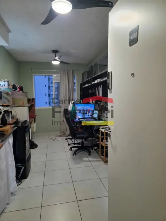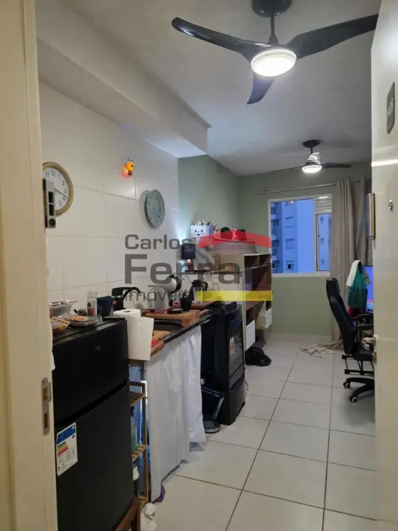 Apartamento com 1 dormitório amplo com banheiro integrado, ventilação natural e box de vidro aberto, sala integrada com cozinha com vista aberta para a Avenida Marquês de São Vicente, ventilador de teto nos ambientes, sol da manhã e bem ventilado.
