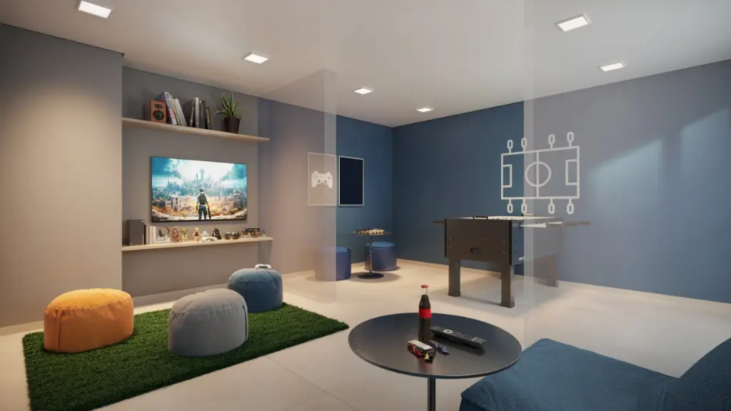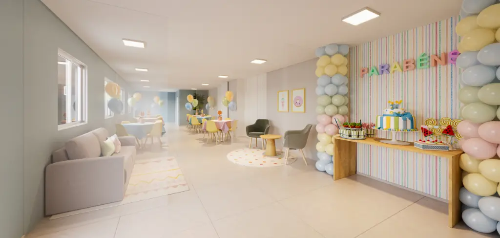 LAZER EXTERNO: 3 Churrasqueiras Piscina Adulto com Deck Molhado Piscina Infantil Quadra Recreativa Playground Espaço para Cine Garden* Pet Agility Praça do Fogo Redário Bicicletário LAZER INTERNO: Salão de Festas Adulto Salão de Festas Infantil Espaço para futura instalação de Minimercado Delivery Brinquedoteca Sala de Jogos Bem-estar Atelier Espaço Influencer Coworking Ginástica Fitness Funcional Sala Multiúso Pet Care