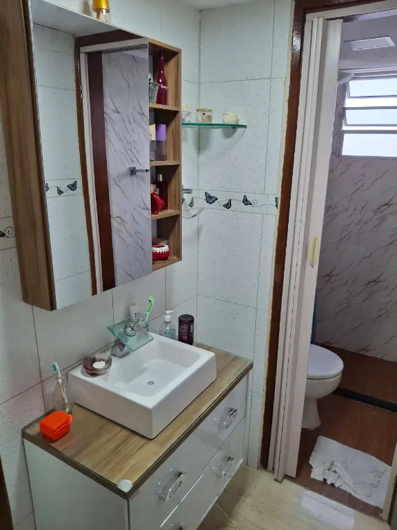 BELISSÍMO APARTAMETO TODOS REFORMADO - Sendo Dois dormitórios, sala dois ambientes, banheiro, lavatório externo, cozinha ampla com planejados de armários e pia em mármore coktoop com forno e coifa, área de serviço arejada e uma vaga de garagem fixa.