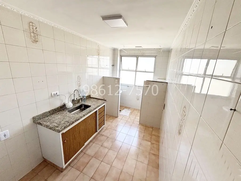 Sala dois ambientes, aconchegante, cozinha com área de serviço, localizado em andar alto, vaga de garagem demarcada.
