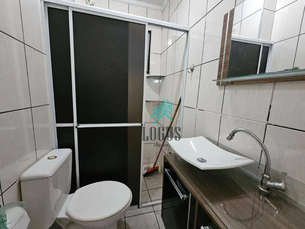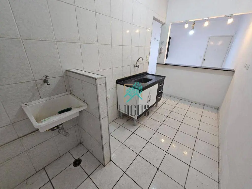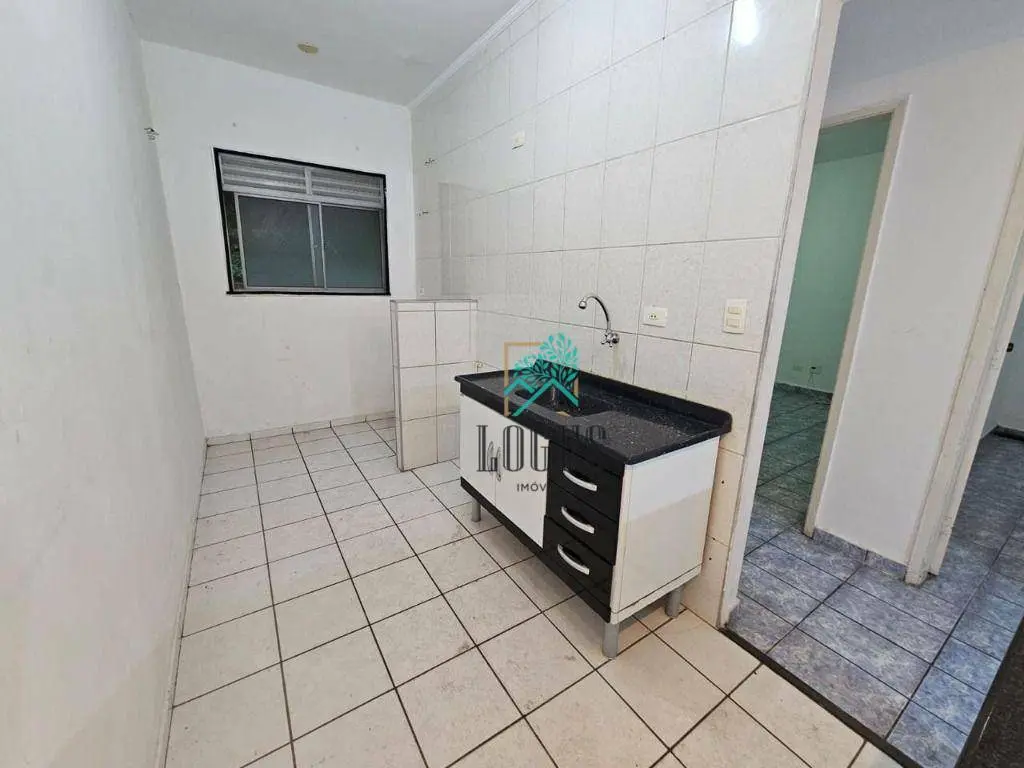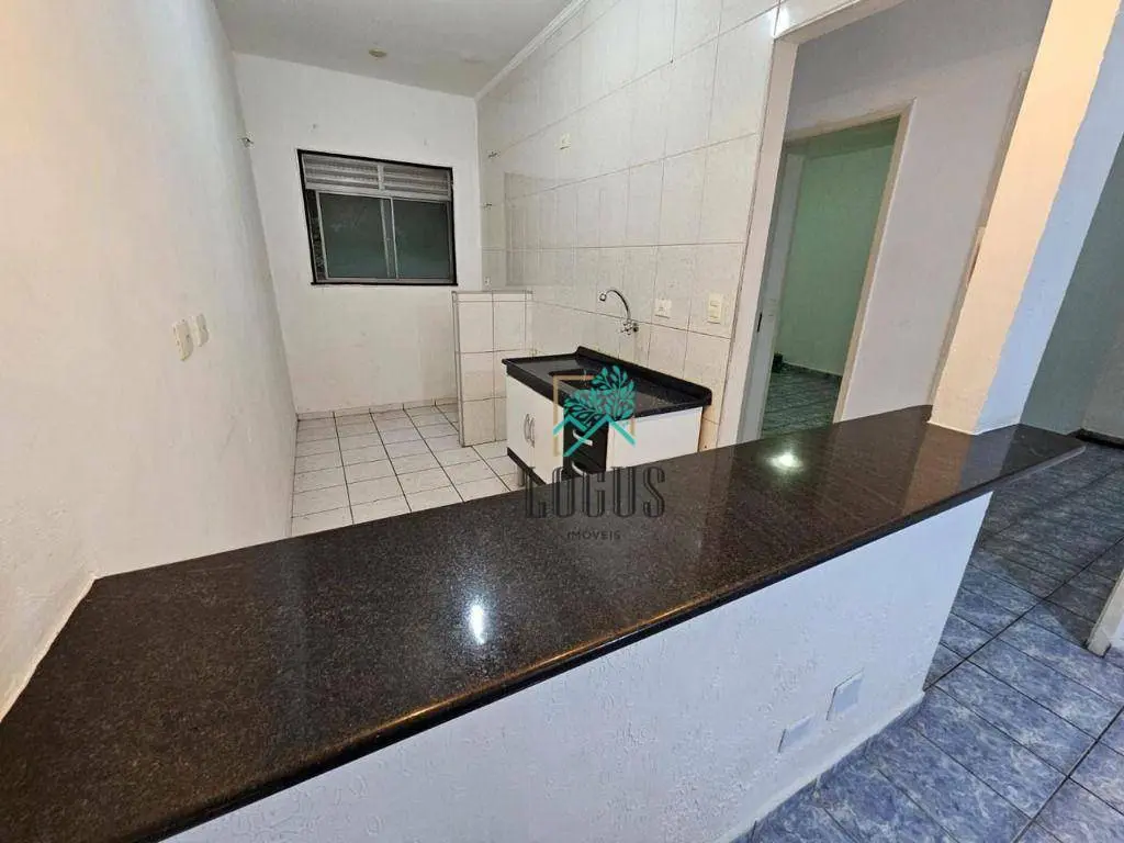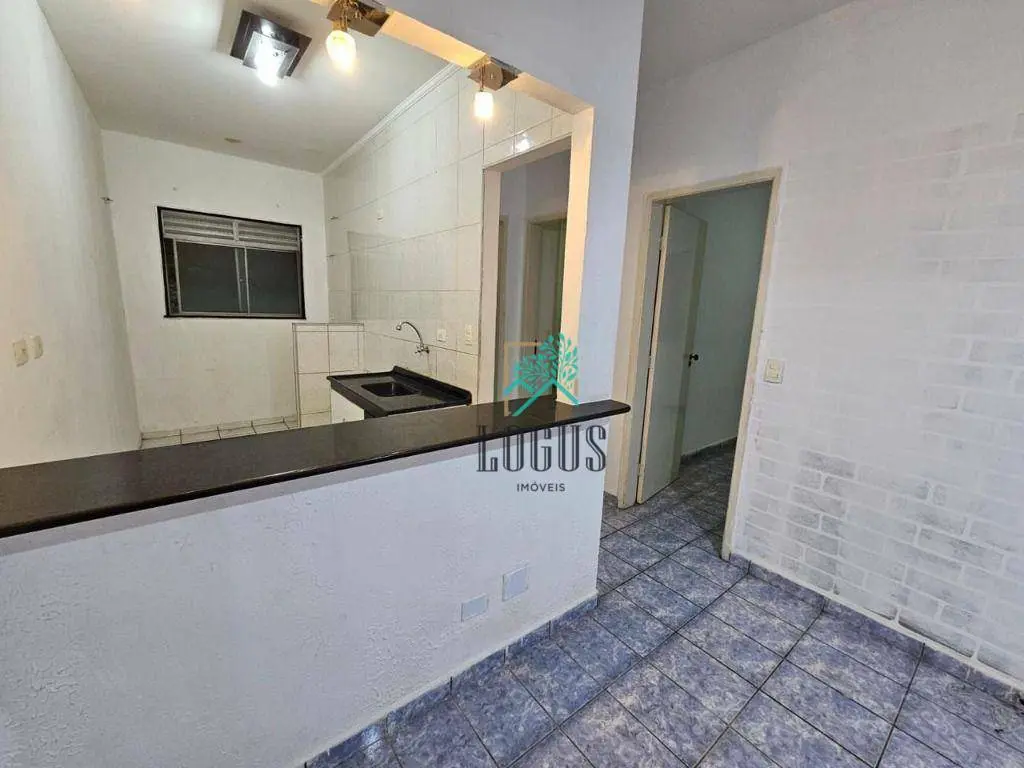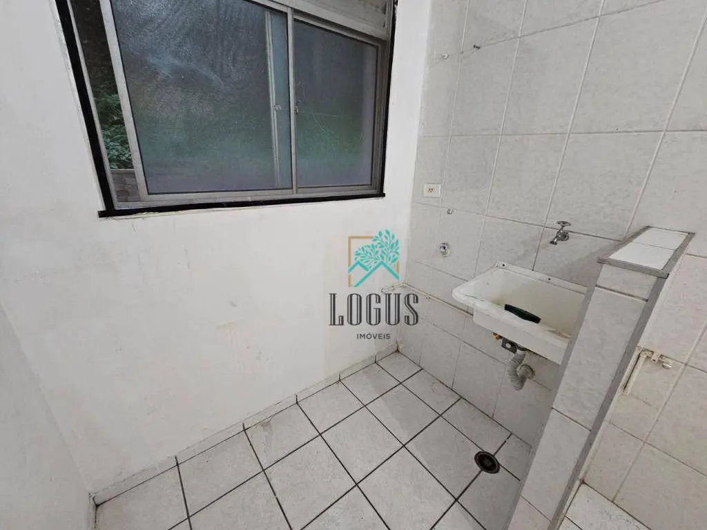 São 2 quartos, 1 banheiro com armário, sala 2 ambientes, cozinha americana, lavanderia, 1 vaga de garagem descoberta.