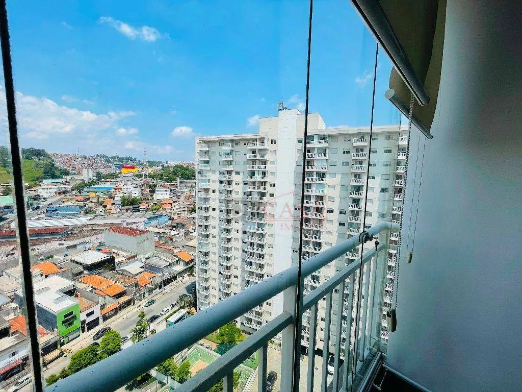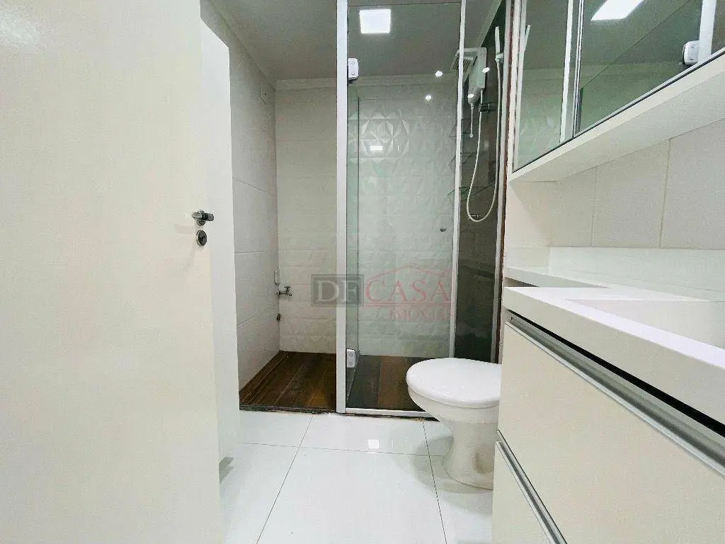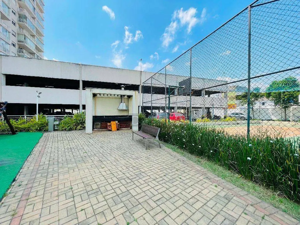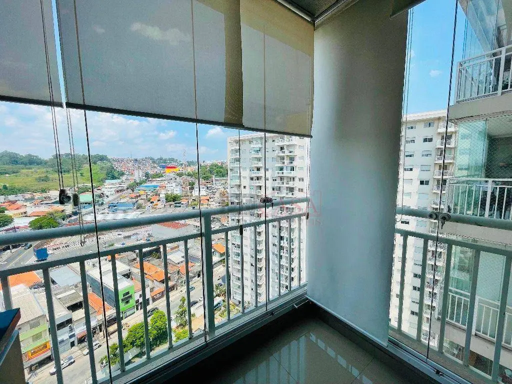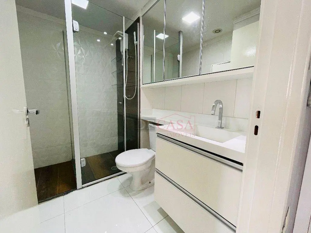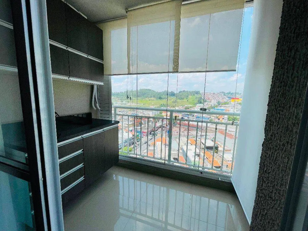 Varanda com blindex, persianas, sofá retrátil, cooktop, porcelanato, banheiro com box e chuveiro instalado, além de infra para ar-condicionado.