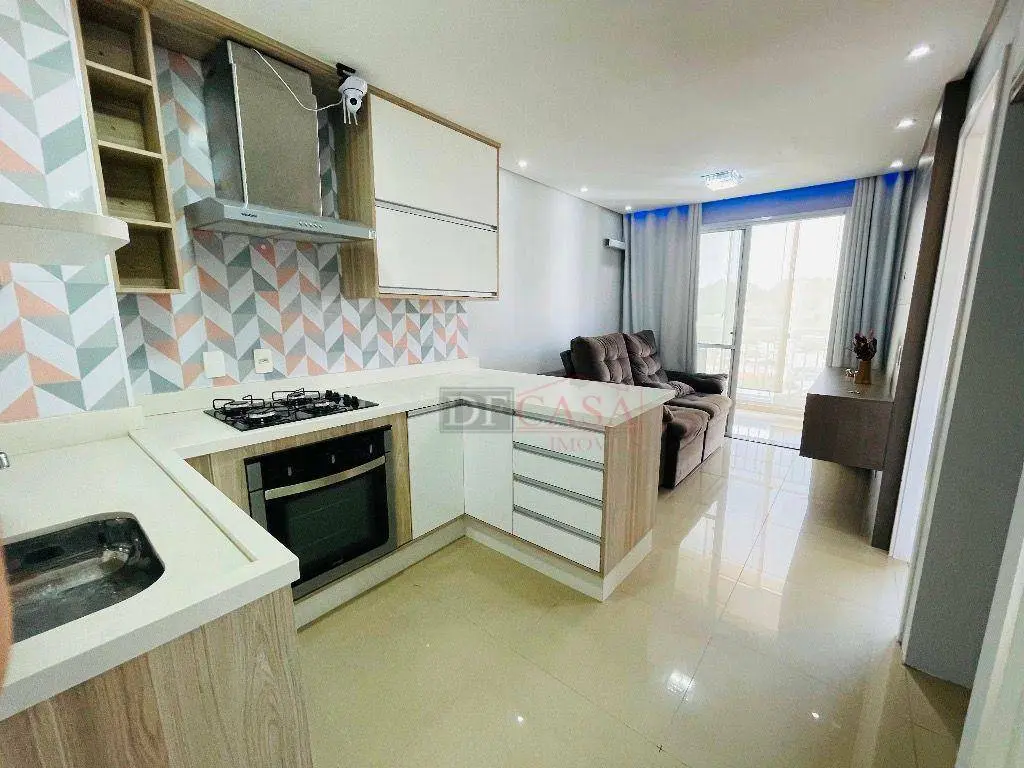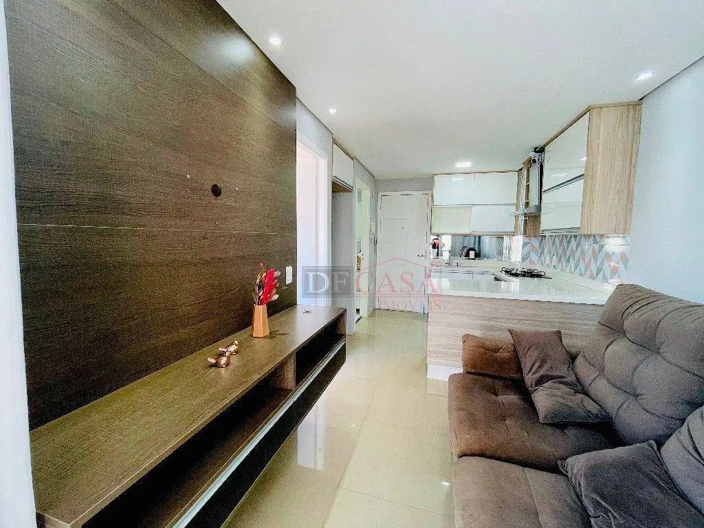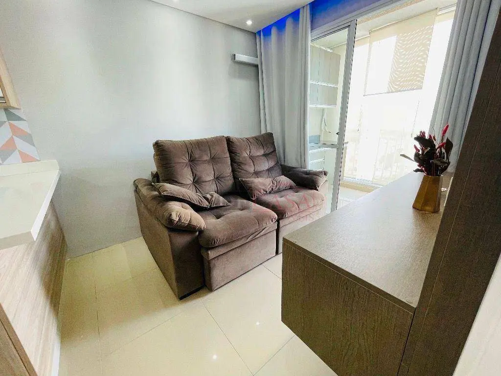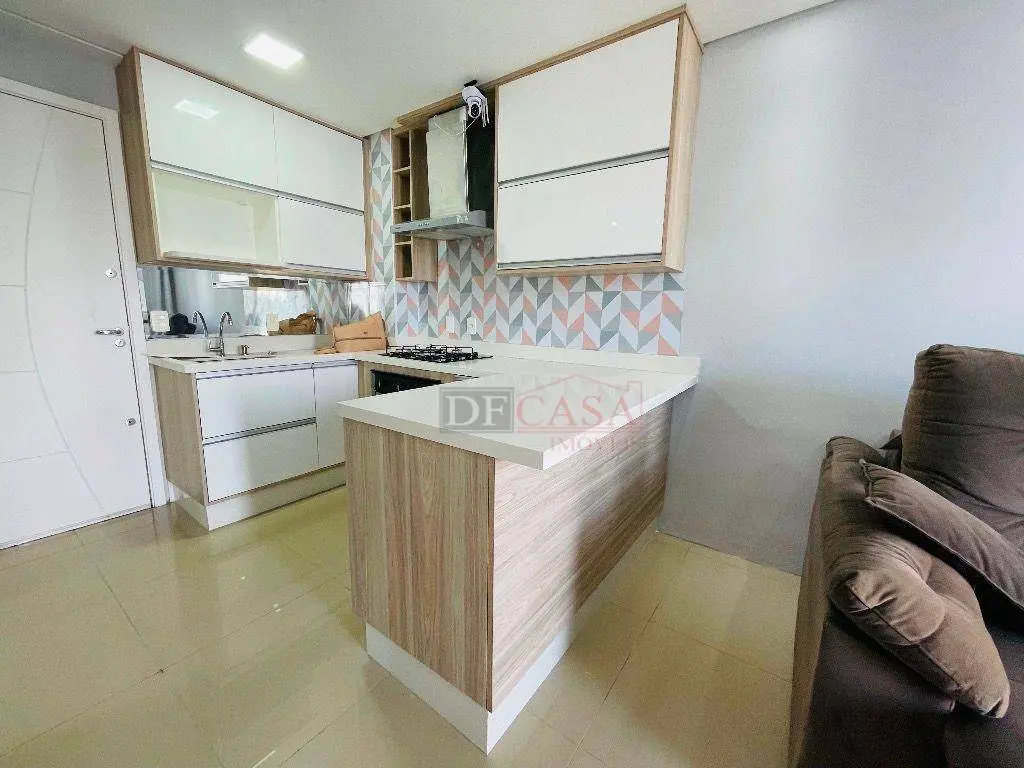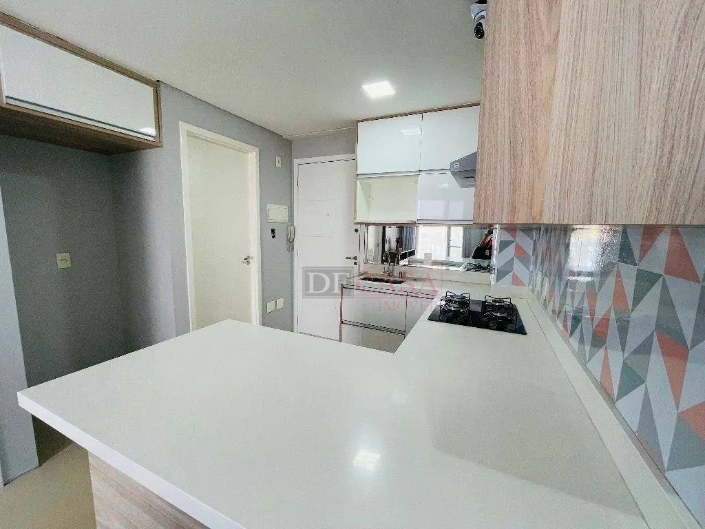 São 42 m², 1 dormitório com suíte, 1 vaga de garagem e todos os móveis planejados já instalados.