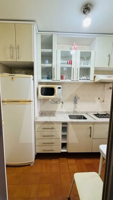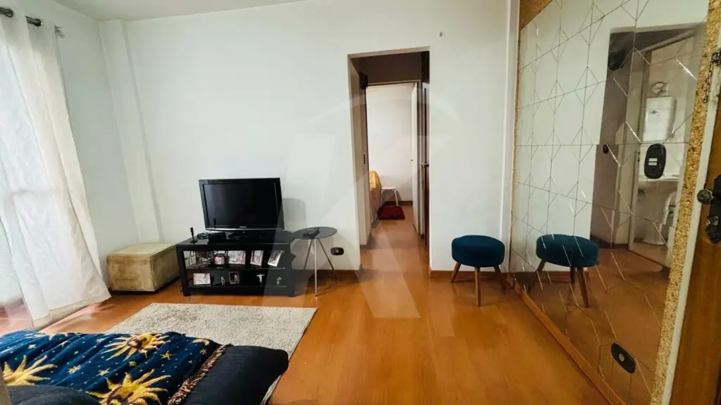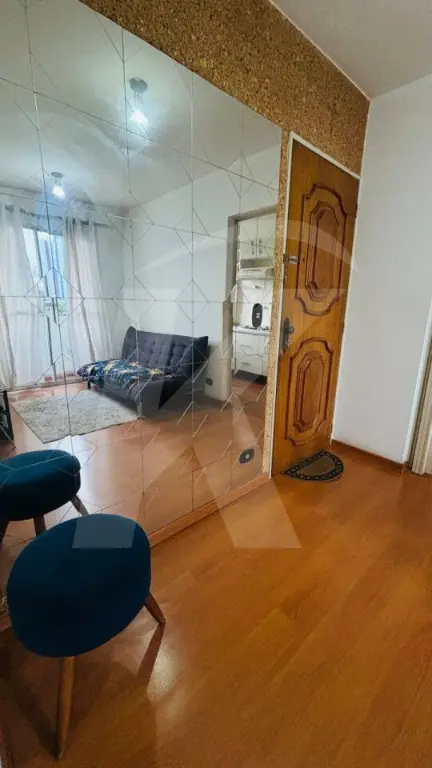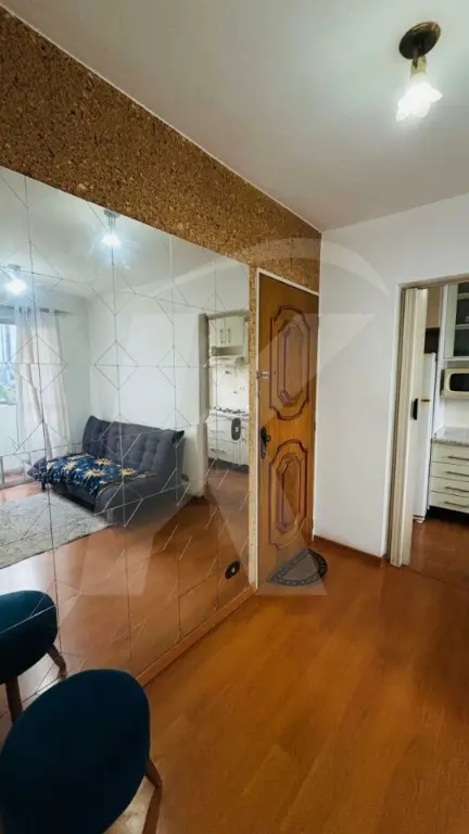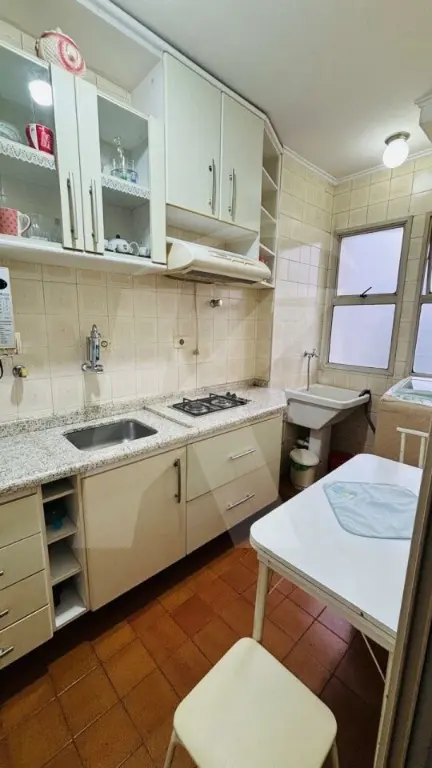 O apartamento está muito bem conservado com 1 dormitório com armário planejado, sala ampla com sacada, cozinha com armários planejados, área de serviço, corredor com armários e banheiro social com box e chuveiro.