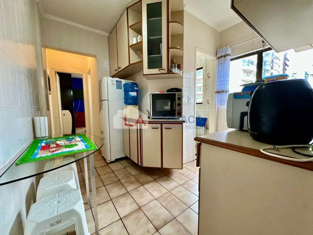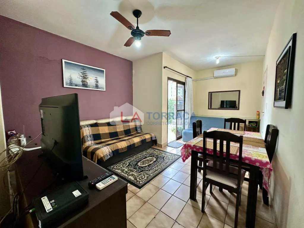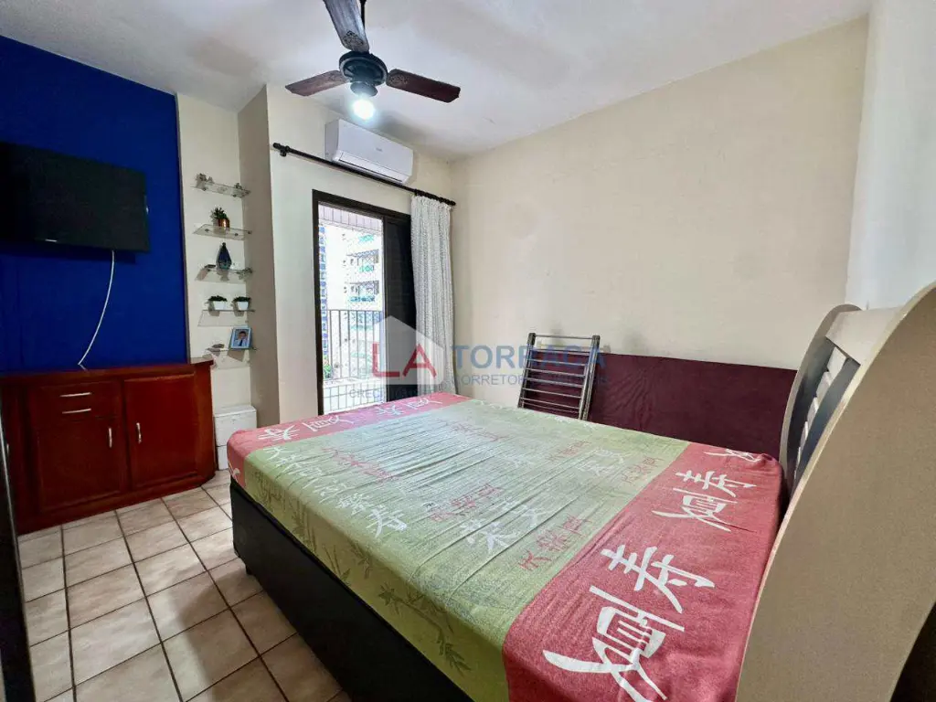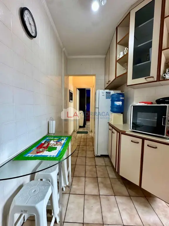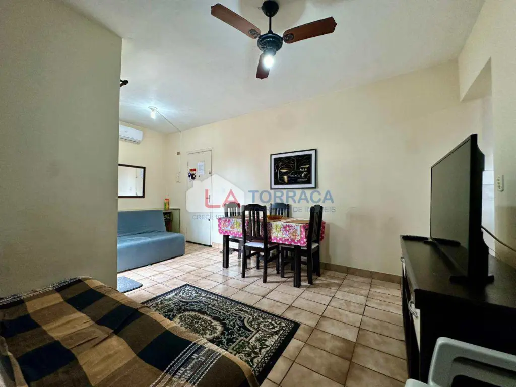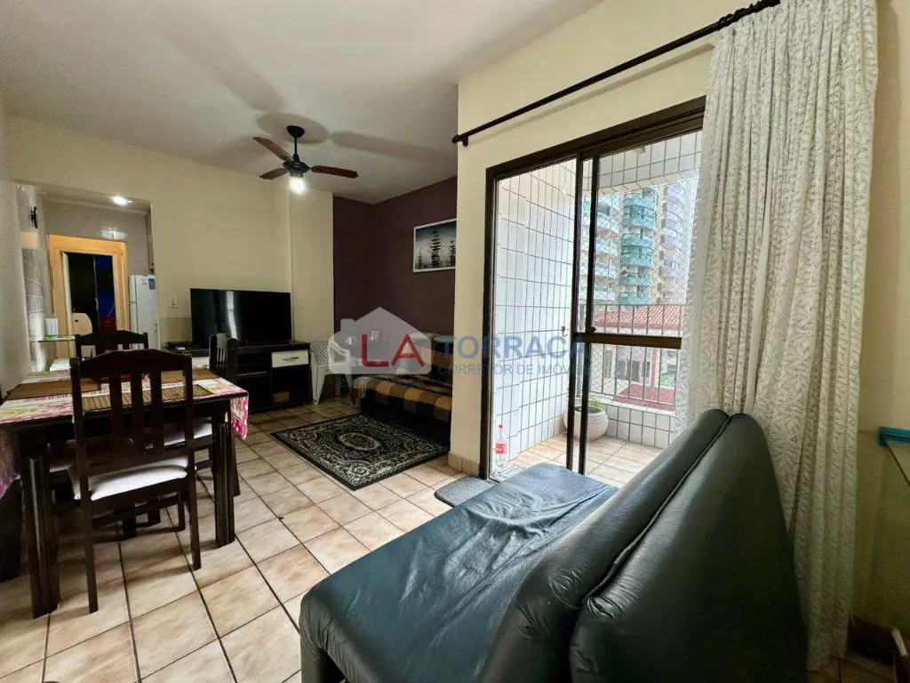 Referência 15829 - Apartamento há 100 metros da Praia, Mobiliado, com ar condicionado, com 1 dormitório com sacada, sala com sacada, cozinha, área de serviço. Prédio com garagem coletiva, interfone, excelente localização no bairro da Guilhermina em Praia Grande!