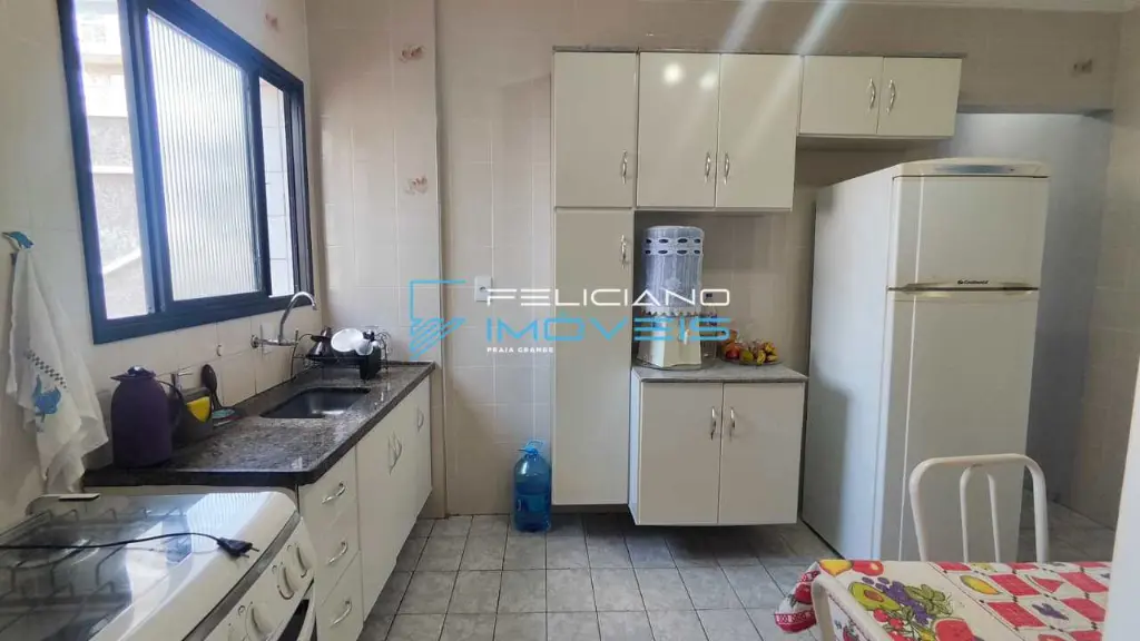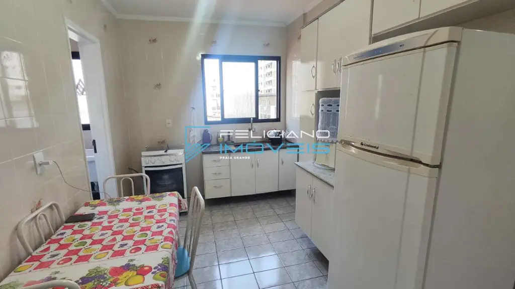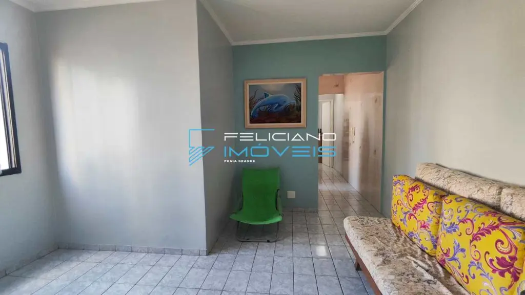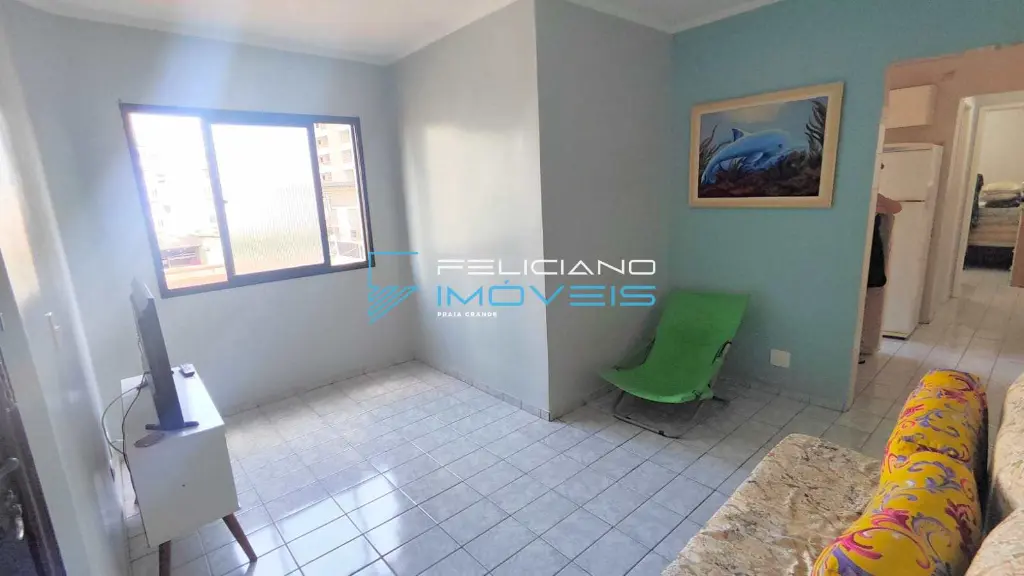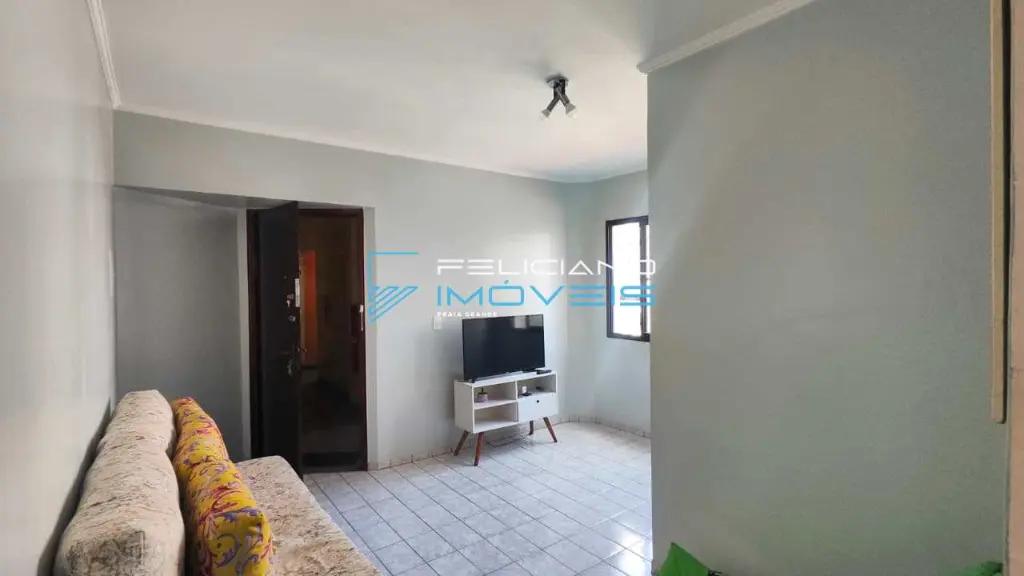 Apartamento amplo de 50 m² com 01 dormitório com sacada vista mar, 01 sala, 01 cozinha, 01 banheiro, 01 área de serviço e 01 vaga de garagem.